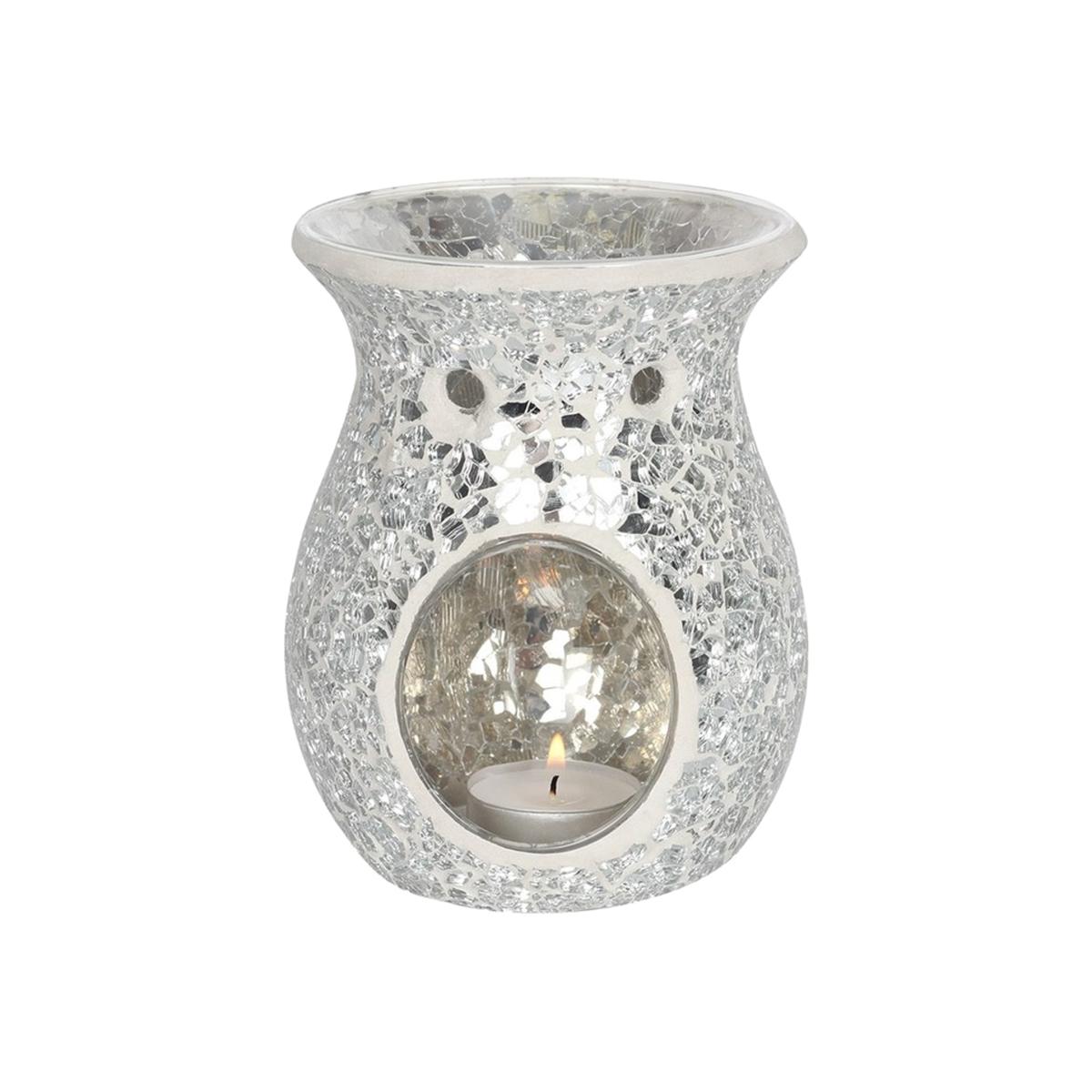 Large Crackle Oil Burner Shimmering and Sophisticated - Silver