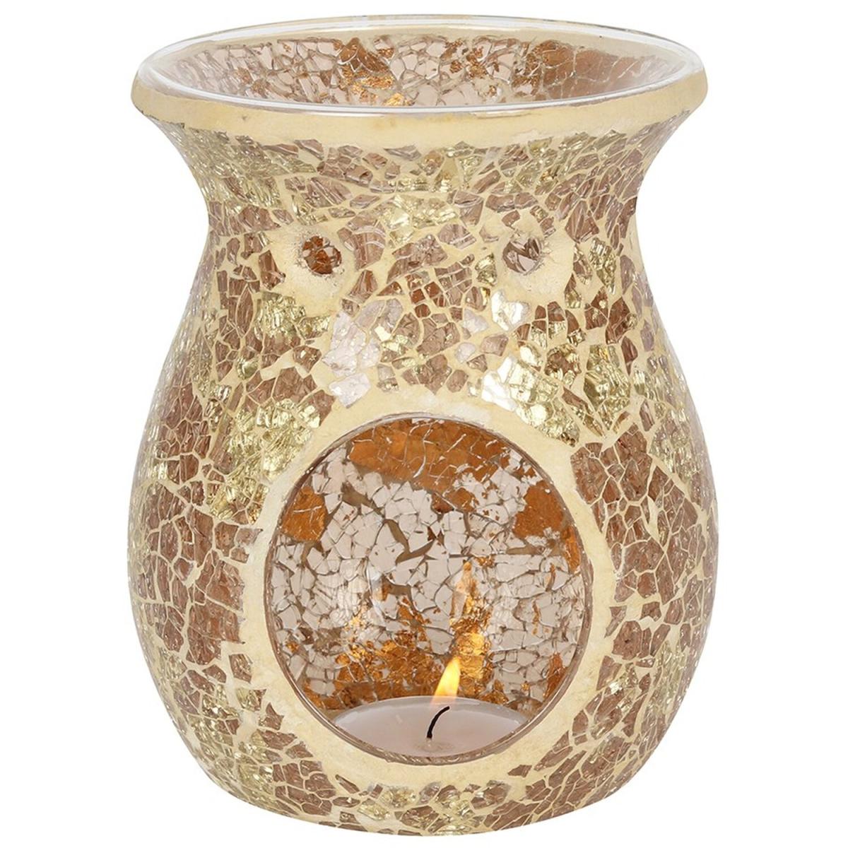 Beautiful large oil burner with a mirrored crackle effect. This item can also be used as a wax melt burner however it is advisable to consider the size and depth of the bowl when adding wax to ensure it will not overrun the edges when melted.