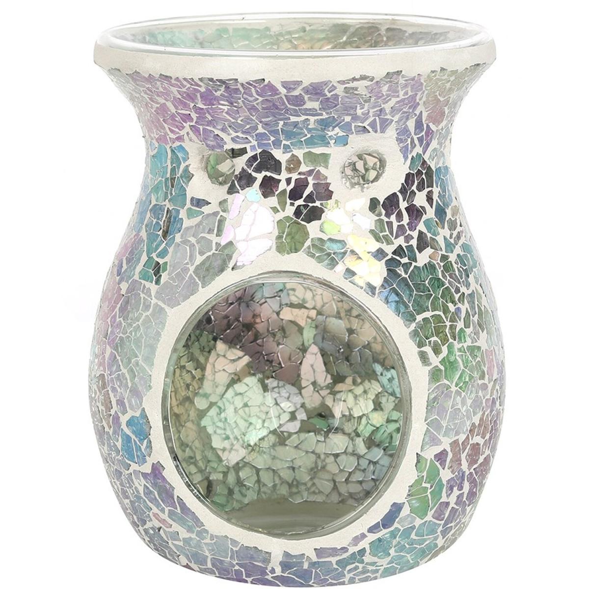 Beautiful large oil burner with a mirrored crackle effect. This item can also be used as a wax melt burner however it is advisable to consider the size and depth of the bowl when adding wax to ensure it will not overrun the edges when melted.
