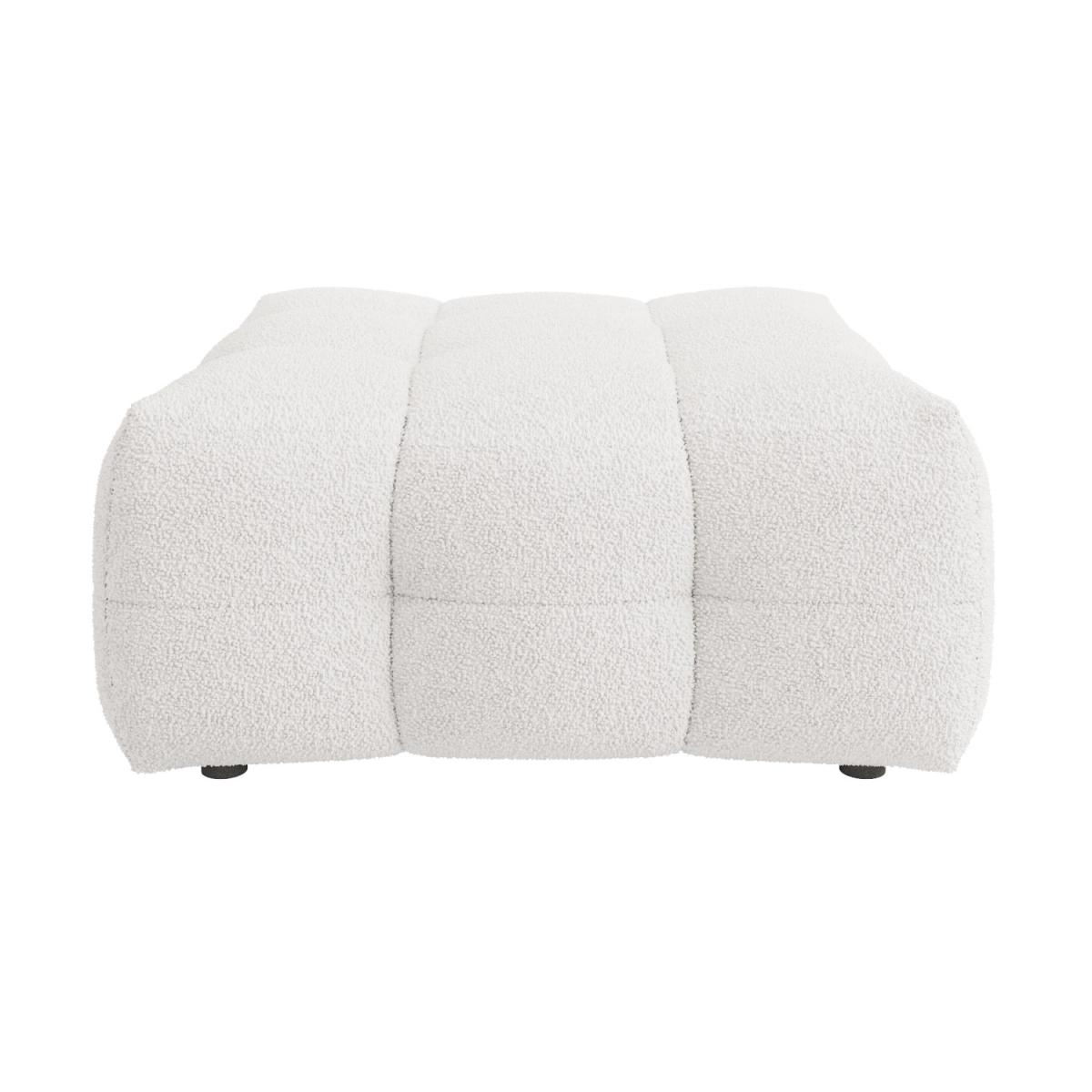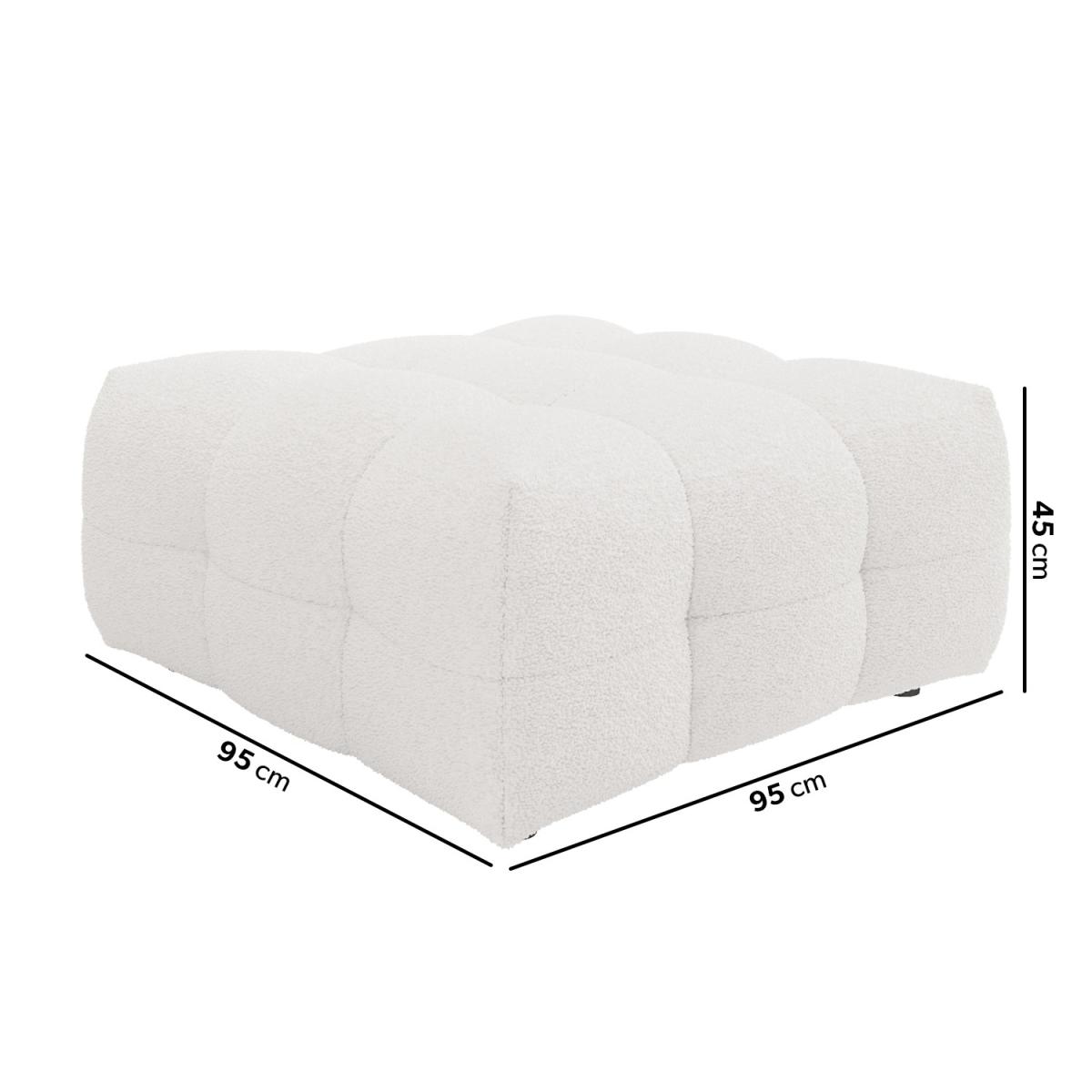 All about me This footstool is the perfect addition to any contemporary living space, and it matches beautifully with the Alessia sofa. The square silhouette adds a stunning focal point, while the neutral boucle coordinates beautifully with any interior. Need to know Dimensions:W94 x D94 x H44 cm Weight: 20 kg Max supported weight: 100 kg Colour:Cream Finish: Upholstered Material: Boucle fabric, wooden frame Filling: Foam and fibre Assembly required: No Packed dimensions: W96 x D96 x H46 cm
