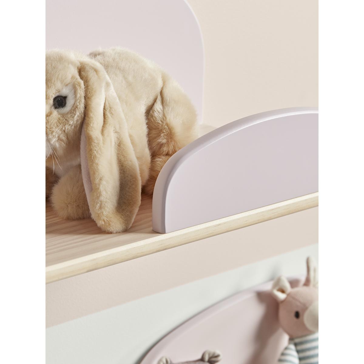 With hidden fittings, smooth lacquered panels in a soft petal pink and a solid pine shelf with visible grain, our Large Cubi Shelf is ideal for safely displaying your little one’s prized possessions.
