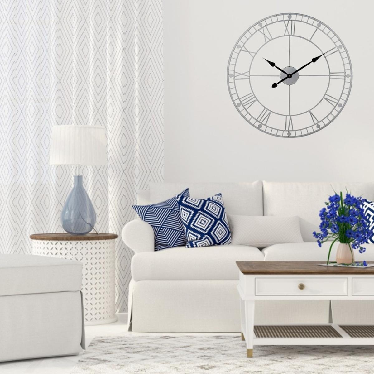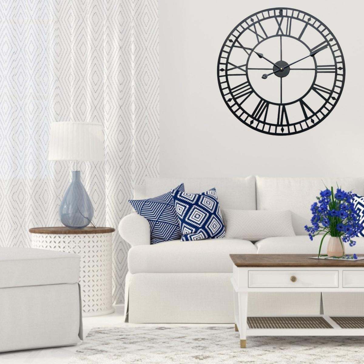 I really like this large metal roman numeral skeleton clock because of its bold, industrial aesthetic, which works brilliantly as a statement piece in contemporary or minimalist interiors. It’s versatile enough to suit both modern homes and eclectic spaces, adding a touch of vintage charm while remaining functional. When styling, consider pairing it with neutral tones and sleek furniture to let the clock stand out, or contrast it with textured or coloured backdrops for more visual interest. Practical tips include placing it above a sofa or sideboard to create a focal point, ensuring it’s at eye level for easy reading and to maximise its impact in your room.