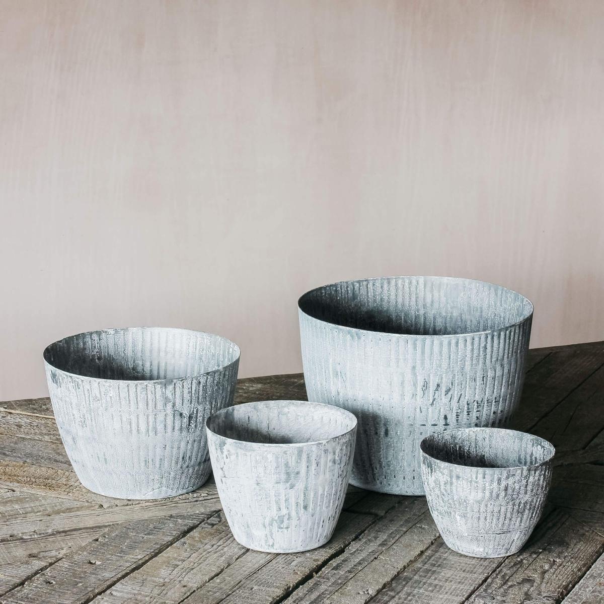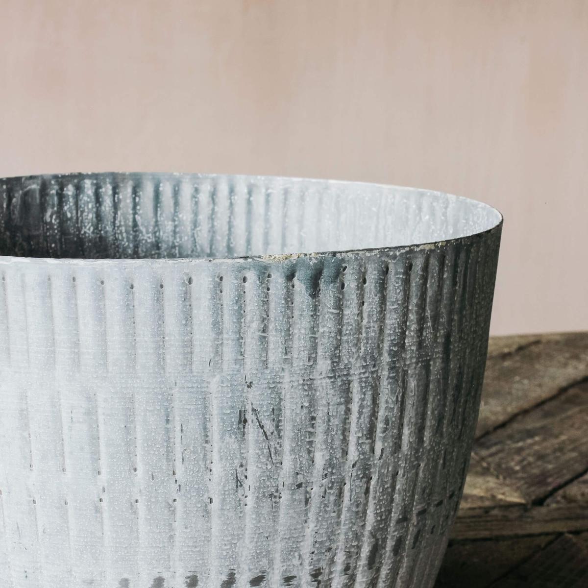 The Fenix collection features a ribbed design on round planters in galvanized iron which will develop a natural patina over time so that each one is totally unique.