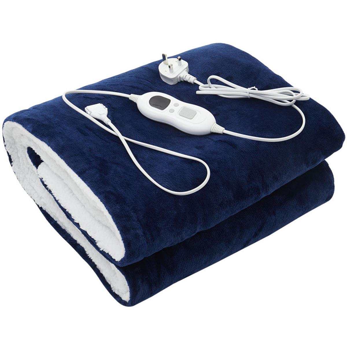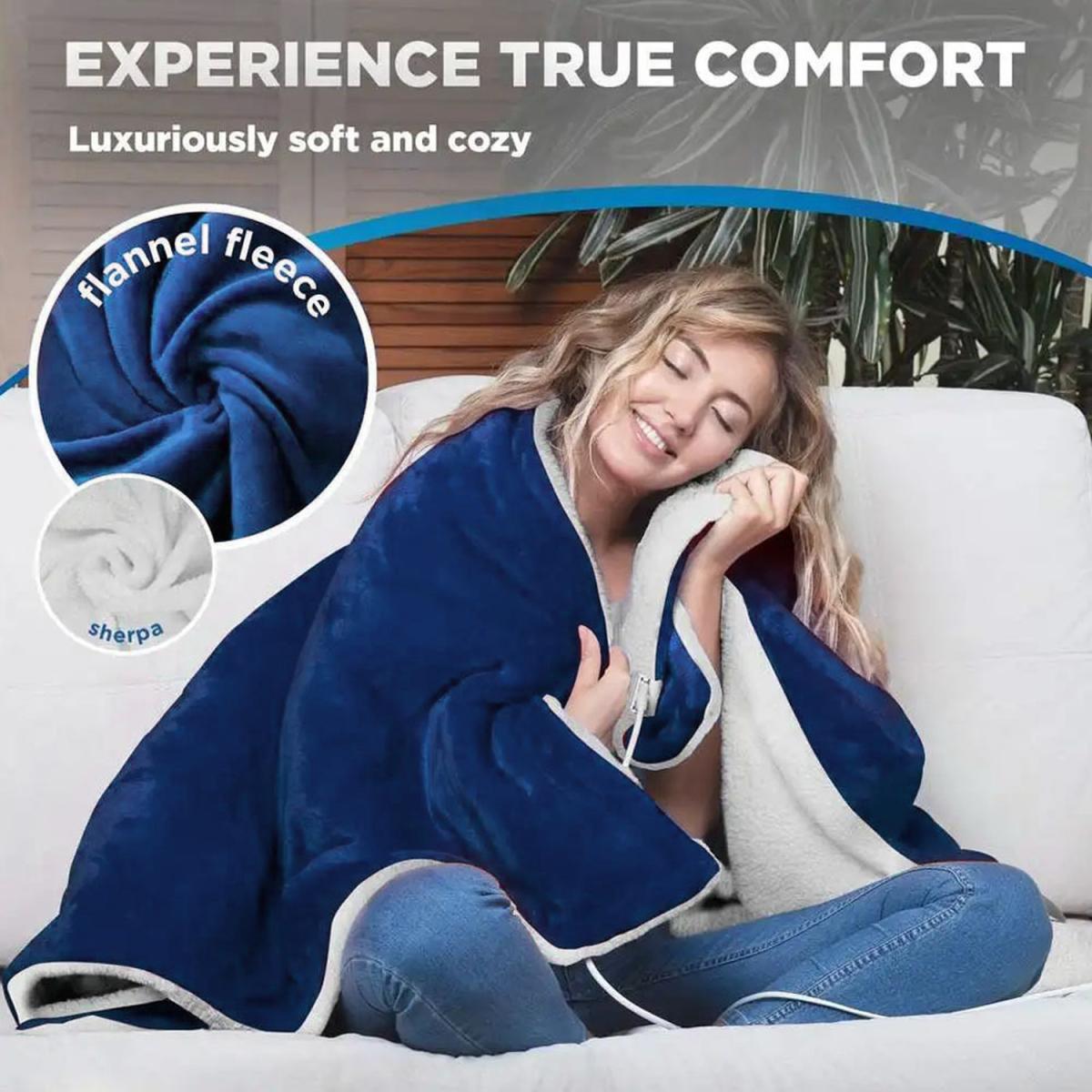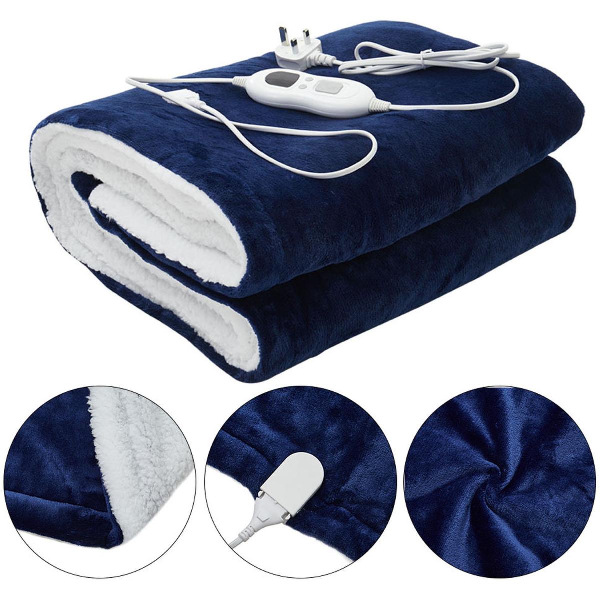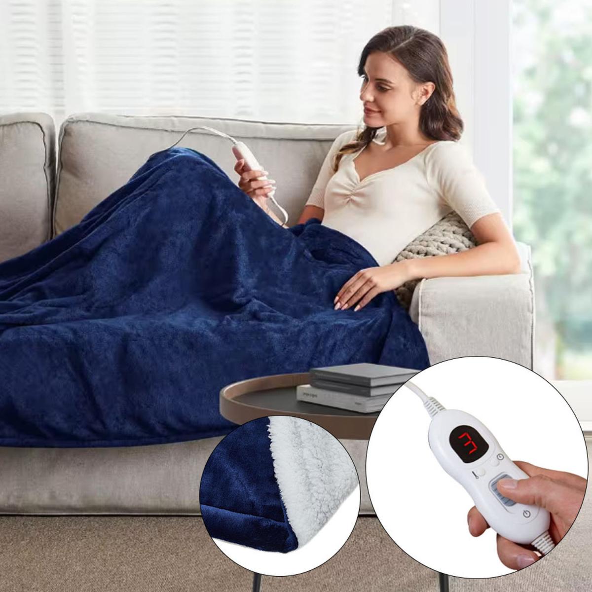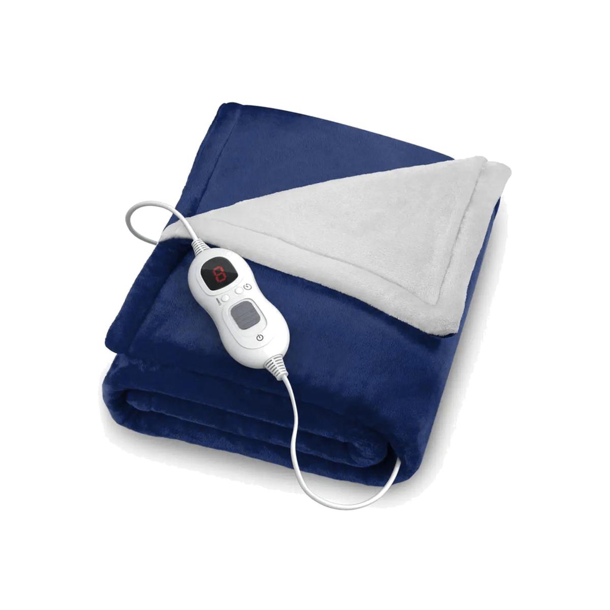Large Flannel Electric-Heated Blanket Throw - Blue