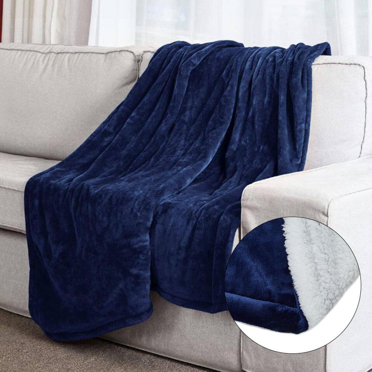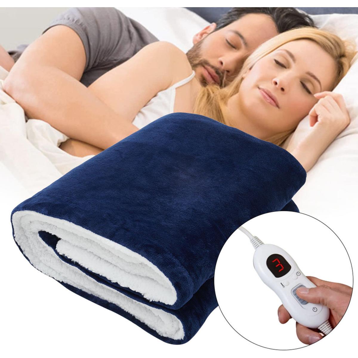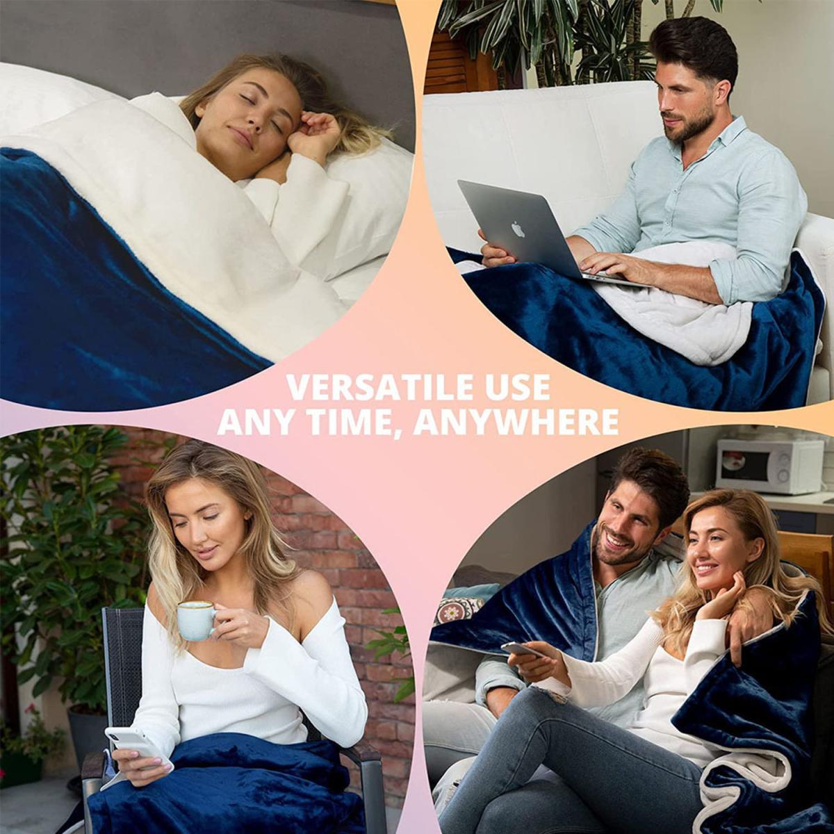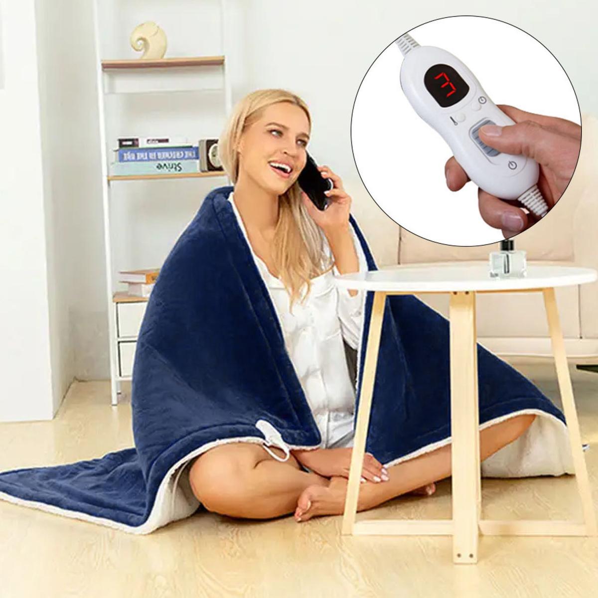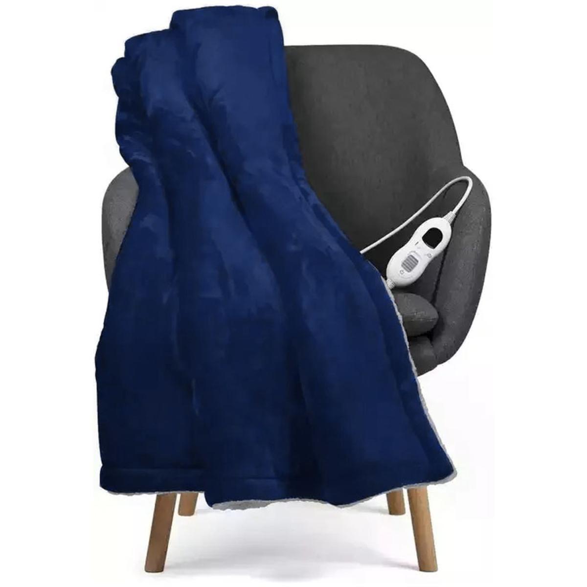 Large Flannel Electric-Heated Blanket Throw - Blue
