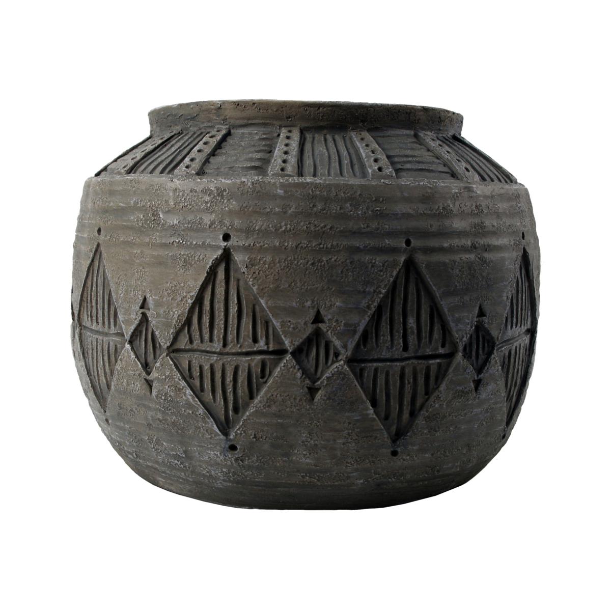 Grey Gliese Diamond Planter. Large fibreglass composite planters, hand finished in a rustic style. Available in a range of designs and sizes. Large planter ideal for either artificial plants or real ones - any plants pictured are for illustration purposes only and are not included. We have a full range of suitable plants available to go with this planter if required. Designed for indoor use but can be used outdoors in a sheltered position, we recommend protecting from extremes of weather. Any of our plants with starter pots smaller than this and all our bare stem plants will fit perfectly inside this planter. Please see images for a size diagram. No drainage holes so suitable for watering indoor plants. Intentional Rustic finish. Material fibreglass composite.