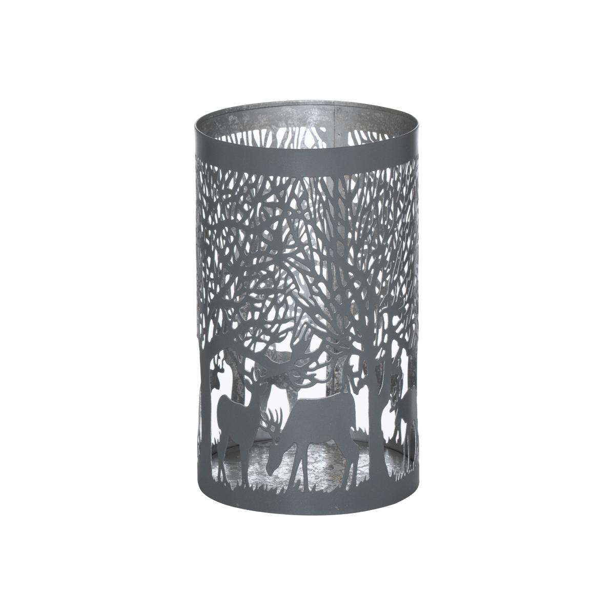 This is the Large Silver and Grey Glowray Stag In Forest Lantern. A stunning lantern with a metallic interior which shows its intricate cutwork pattern off beautifully. A perfect addition to add atmosphere and warmth to interiors and perfectly inkeeping with the enduring grey interiors trend. This lantern will look lovely alone or in combination with an array of others in the same finish. Add one of our real wax LED candles (sold separately) to finish the look.