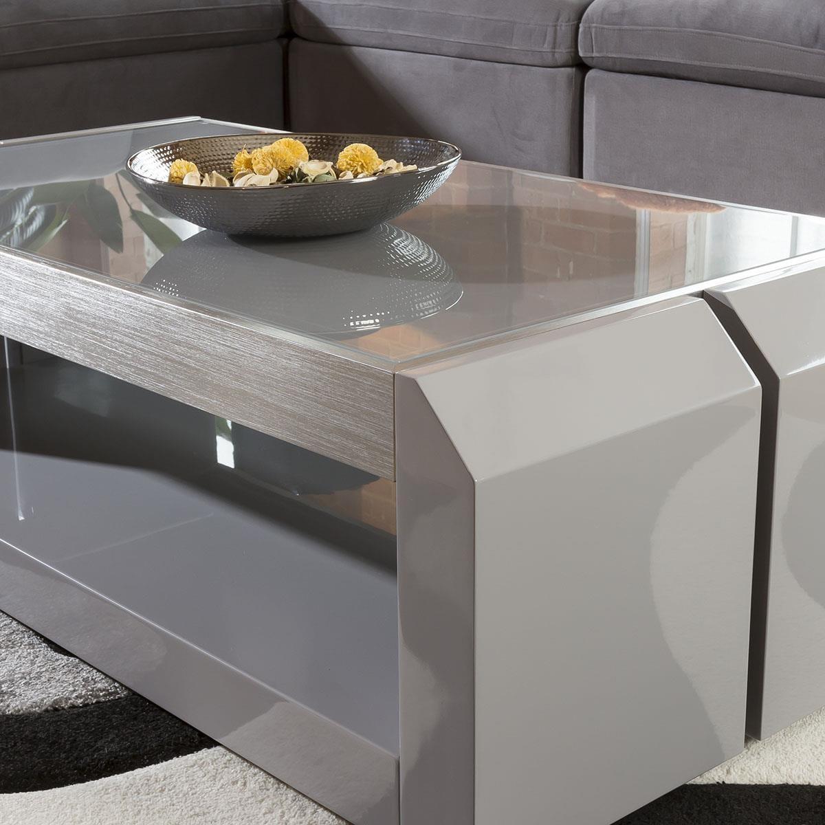 Quatropi's luxury 701. A Grey Coffee Table is from a full range of Living Room Furniture. The table features an aluminium trim and grey glass top making it easy to implement into your lounge or snug. This coffee table is built to a high specification and exudes superb quality and strength from this stunning design. Our Deluxe Coffee and Console tables are made to suit a wide variety of contemporary living rooms, halls, bedrooms or snugs and dining areas. Choose from a wide variety of colours, finishes and materials available including; smooth high gloss veneers, a variety of wood, stainless steel and other metallic trims and finishes. Light, heavy, chunky, large and small - our designer console tables come in all sorts of shapes and sizes. If storage is a must have on your cabinet, many of our fine coffee tables have wide shelves, or look out for our coffee tables with drawers. W120cm D60cm H38cm High Gloss Finish Matching Items Available