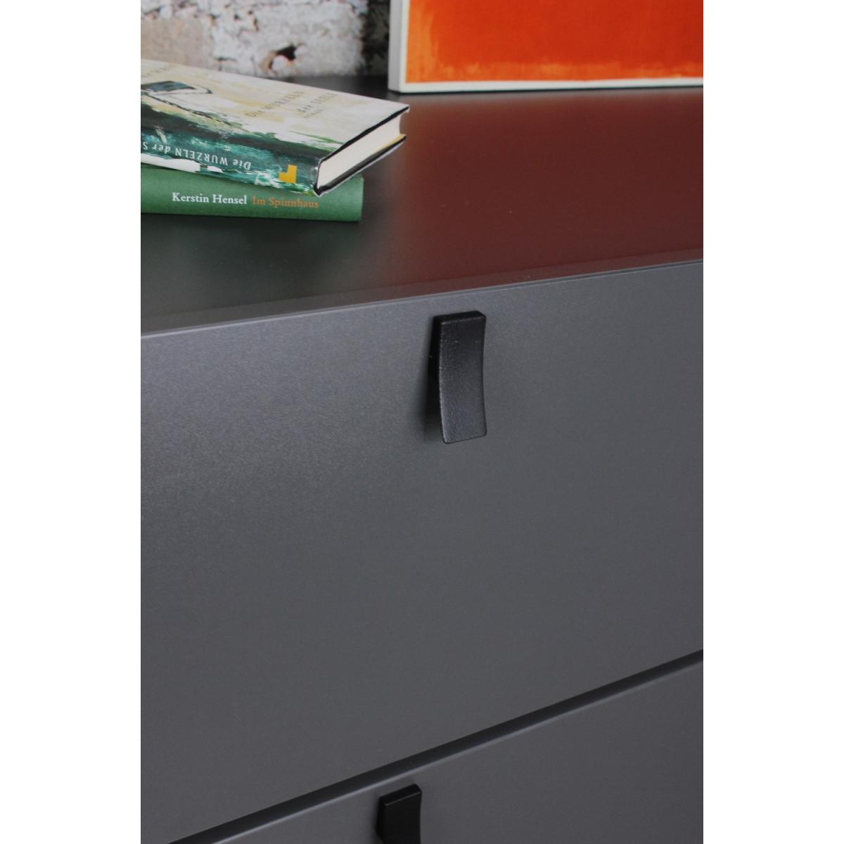 I love this grey TV unit for its sleek, modern look and practical storage. It's versatile enough to work well in a range of interiors, from contemporary living rooms to more eclectic spaces. The neutral tone makes it easy to pair with colourful accessories or textured textiles, while the combination of drawers and open shelves provides good flexibility for organising media devices, books, or decorative pieces. To style it effectively, consider adding a few minimalist ornaments or framed photos on top, and use the open shelves for items like plants or tech accessories to keep surfaces tidy. It’s a smart choice for those seeking streamlined storage with a sophisticated edge.