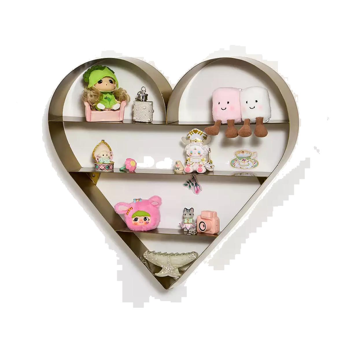 I love this heart-shaped shelf for adding a playful yet stylish touch to a variety of interiors. Its compact size and open design make it perfect for displaying cherished trinkets, small plants, or organised book collections. It works well in eclectic, boho, or even modern spaces where a bit of personality is wanted without overwhelming the decor. Practical styling tips include layering items with different heights and textures for visual interest, or using it to create a colourful display of your favourite toys or keepsakes in a children’s room. Its gold finish adds a subtle touch of luxe, making it versatile enough to co-ordinate with metallic accents or minimalist palettes.