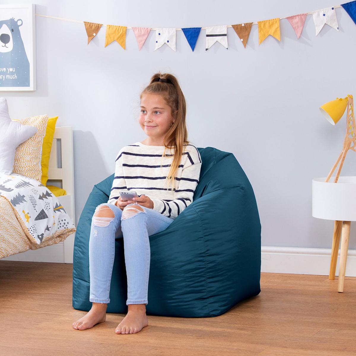 At the heart of every teens' bedroom is a beanbag chair, and this one is super comfy. This unique chair is perfect for reading, relaxing, exploring the great outdoors and everything in between. Designed with a raised back for hours of comfort, and filled with just the right amount of bead for a supportive, sink-in finish. Super lightweight and portable and great for developing toddlers autonomy. Relax assured as we are fully compliant with the British Standard BS5852 Fire Furniture Regulations 1988. Our designs feature overlocked stitching and double zipping for the security of bead filling.
