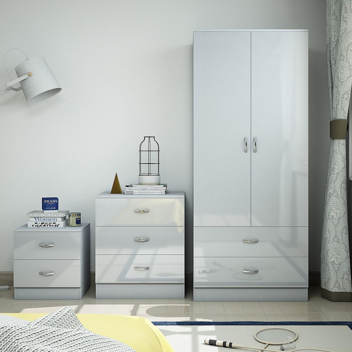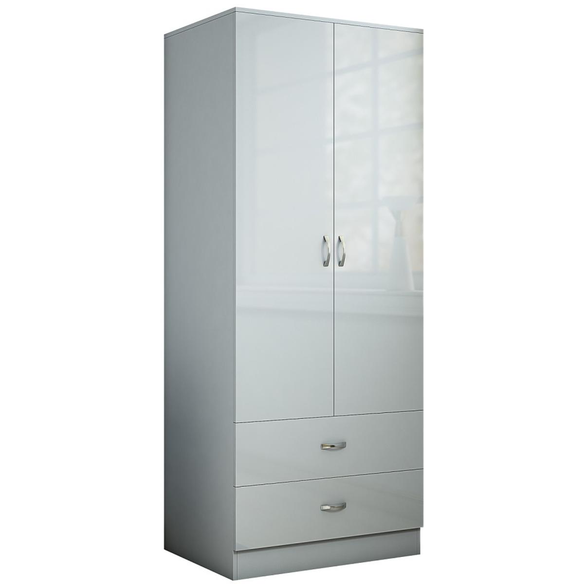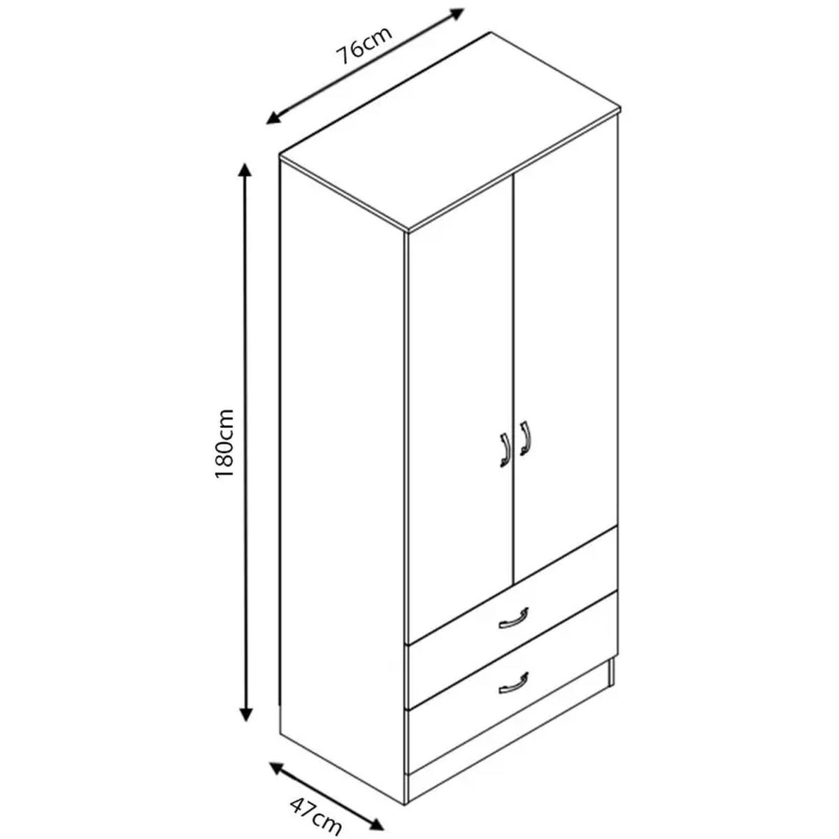 The 2 Door 2 Drawer Combination Wardrobe with High Gloss Grey Finish is a stunning and functional piece of furniture that will add a touch of modern elegance to any bedroom. The wardrobe is designed with a sleek and contemporary look, featuring a high gloss grey finish that exudes sophistication and style. The wardrobe is constructed with high quality materials, ensuring its durability and longevity. It features two spacious doors that open to reveal ample storage space for hanging clothes, with a rail that runs across the top of the interior. Two spacious drawers are also included, which provide additional storage options for folded clothing or accessories. The wardrobe's high gloss grey finish is achieved through a specialized painting process that gives it a lustrous and smooth surface. The finish not only looks stunning but is also easy to clean and maintain, making it ideal for busy households. The wardrobe's design is also practical and functional. The doors and drawers are equipped with easy to use metal handles that provide a comfortable grip and a sleek appearance. The wardrobe's dimensions are optimized to fit most bedroom spaces, making it a versatile and useful addition to any home.