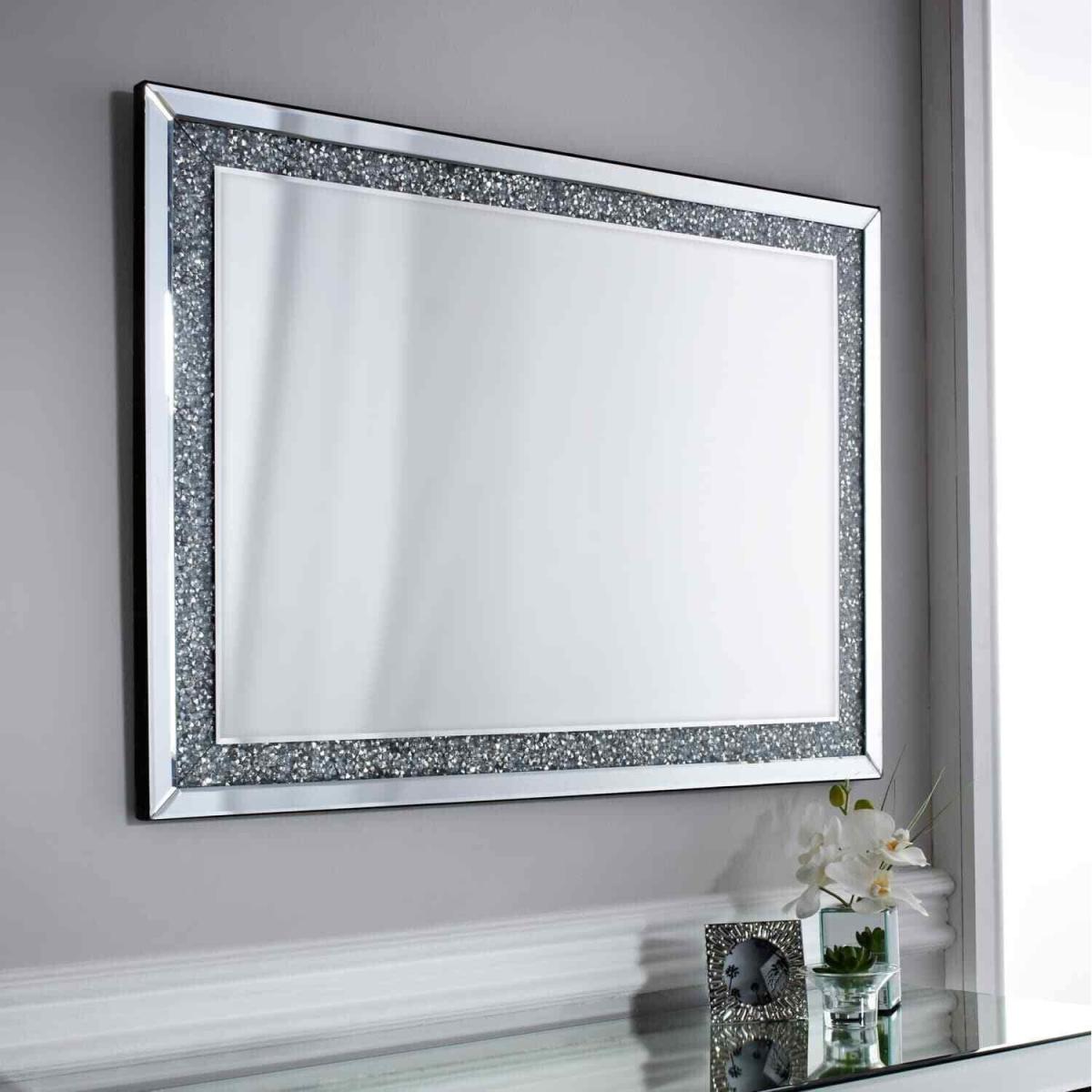 Large Jewel Wall Mirror Loose Crushed Diamante Crystal Rectangle - Silver
