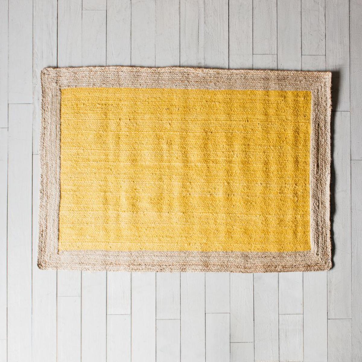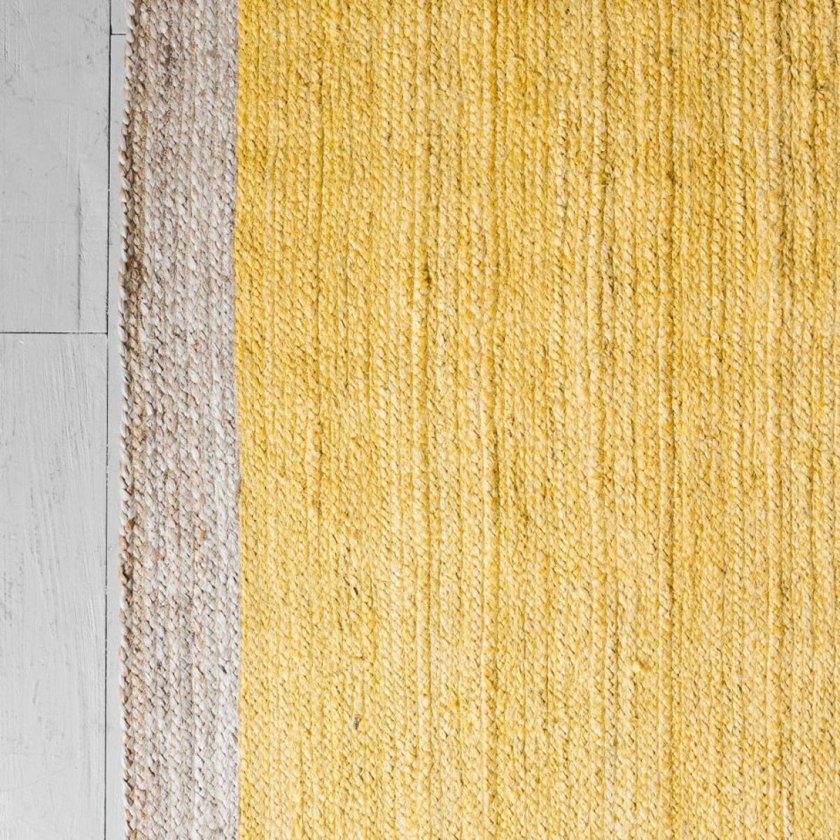 Gorgeously vibrant in a stunning sunny yellow and a natural border. Made of jute, this large rug will brighten up any room.