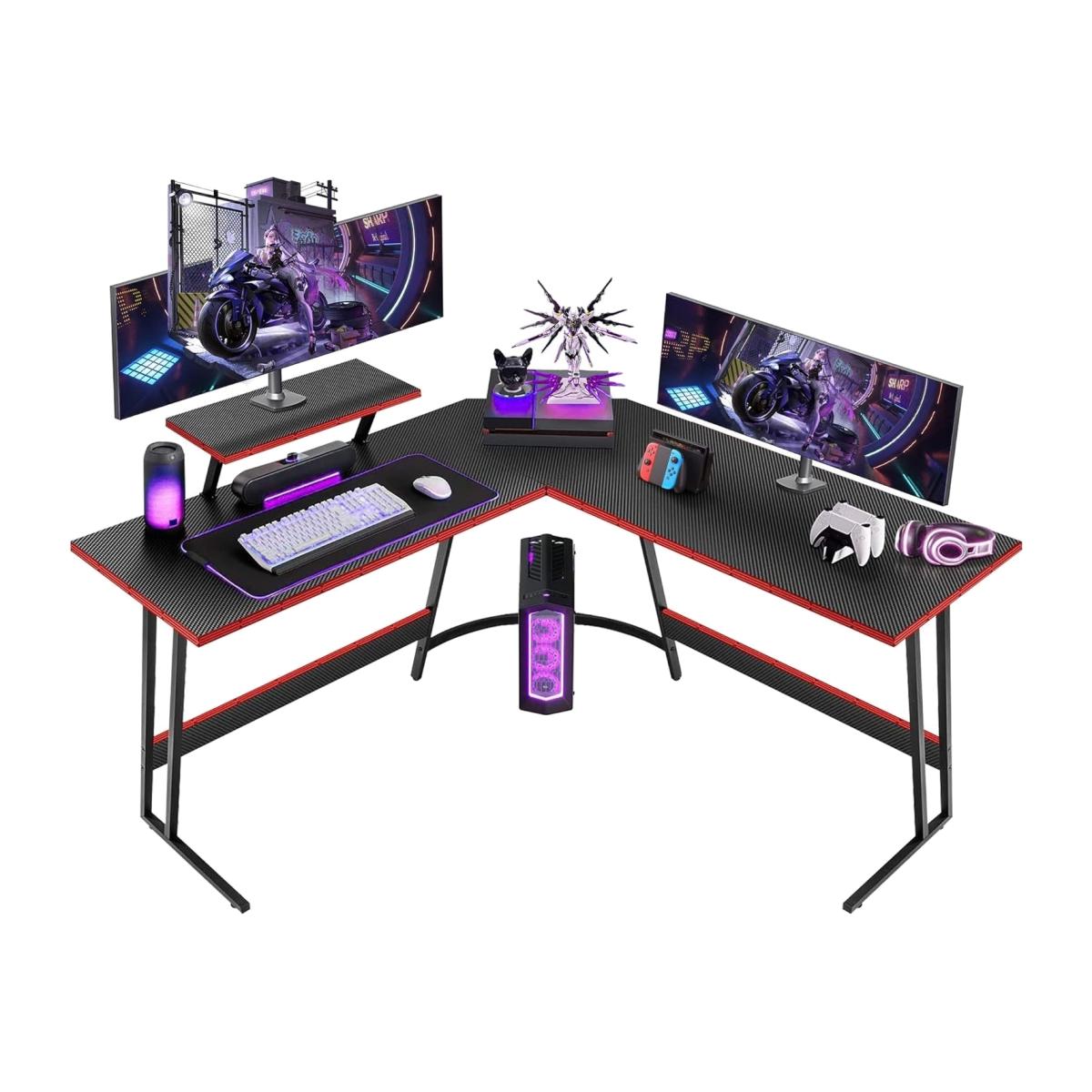 I’m a fan of this red L-shaped corner desk because its bold trim and generous surface instantly define a gaming or home-office zone without feeling bulky. It suits modern, industrial or minimalist interiors - anywhere you want a strong focal point and plenty of room for dual monitors, peripherals and décor. For styling, keep cables tidy with under-desk trays and cable clips, then add floating shelves above for headsets or collectibles. A slim monitor riser frees up desktop space and lets you tuck a small plant or two in the corner to soften the look. Finally, choose desk mats or desk-mounted LED strips in complementary hues (black, grey or white) to tie everything together.