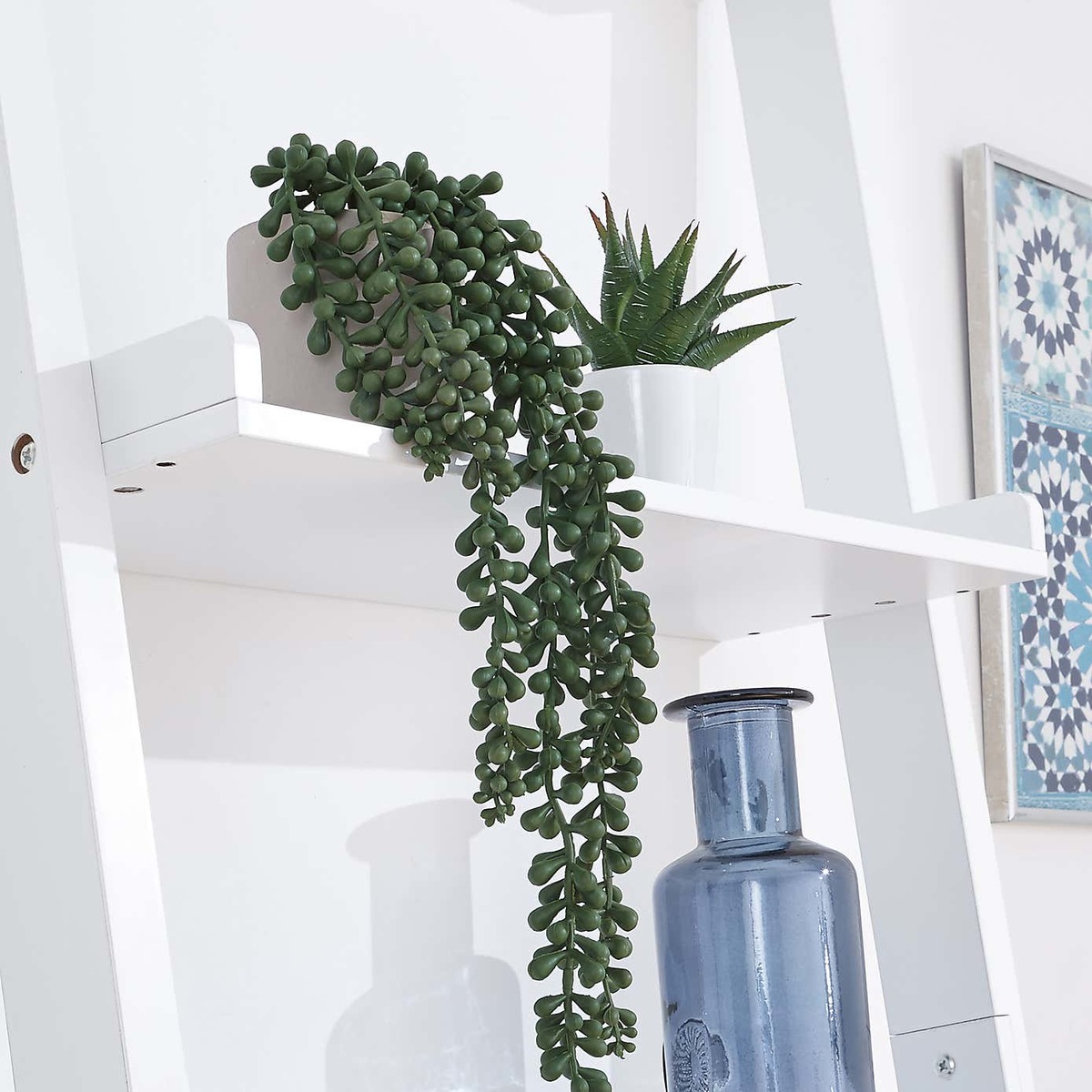 I love a big white ladder shelf like this because of its versatility and clean look. It works particularly well in minimal, Scandinavian, or contemporary interiors thanks to its simple design. You can style it with a mix of books, plants, and decorative objects to add personality and colour. Practical tip: use it to organise your living room or home office, alternating functional storage with decorative accessories to keep the look fresh and uncluttered. It’s also great for making a space feel taller and more open, especially in smaller rooms. The white finish ensures it blends seamlessly with various colour schemes, making it a flexible piece you can keep for years.