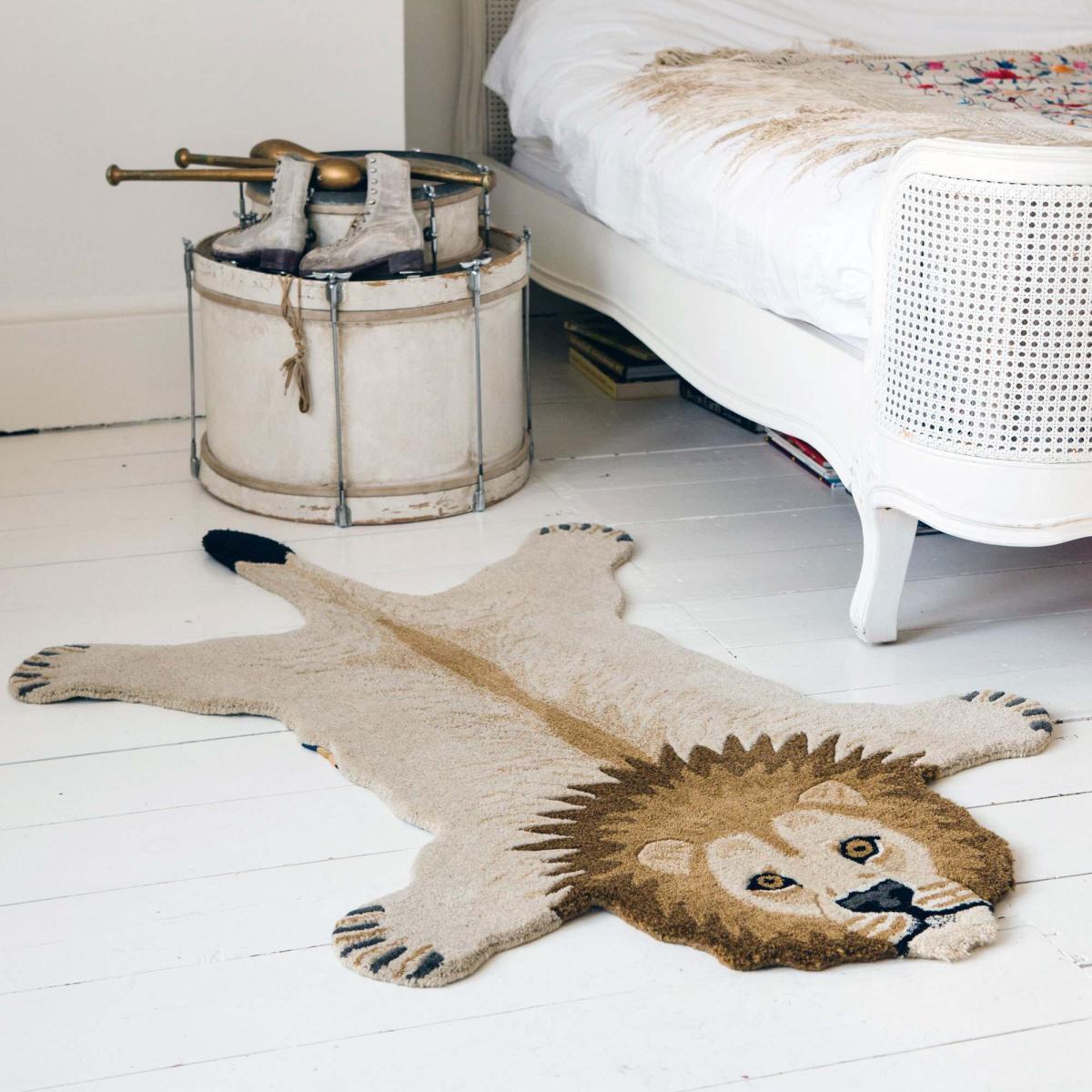 The large lion rug is a fantastic statement piece for a child's room, adding both warmth and a playful touch. I love its bold design and soft texture, making it perfect for creating a cosy, inviting space. It works well in interiors with a neutral or minimalist palette, where it can serve as the focal point, or among more colourful schemes for a fun pop of character. Practical styling tips include pairing it with simple furniture and layered textiles for a balanced look, and placing it in a reading nook or play area to encourage imaginative play. Its size is ideal for making a striking yet functional centrepiece in a variety of room styles.