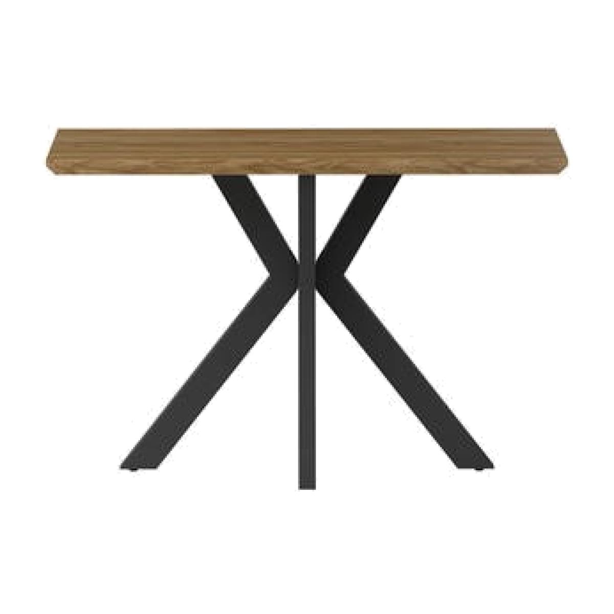 Dimensions:80 H x 120 W x 40 D cm The Liberty console table has a lot to shout about. Smart Top Technology (Heat, Stain and Scratch resistant) applied to the wood effect tops, three fabulous finishes in Oak, Grey and Light Walnut. Features: Wood effect top in Light Walnut Heat Stain and scratch resistant Black powder coted metal legs Matching items available Assembly Required