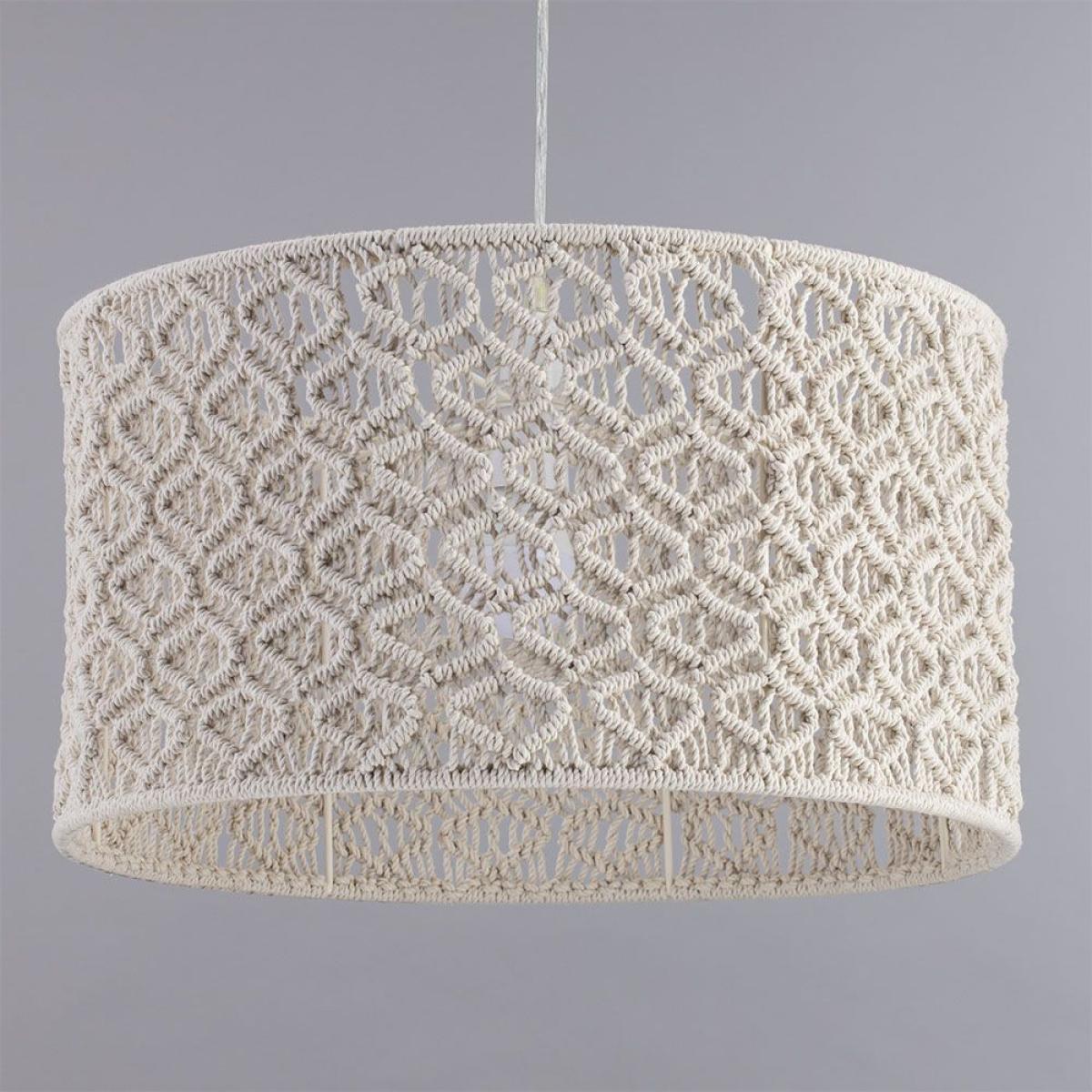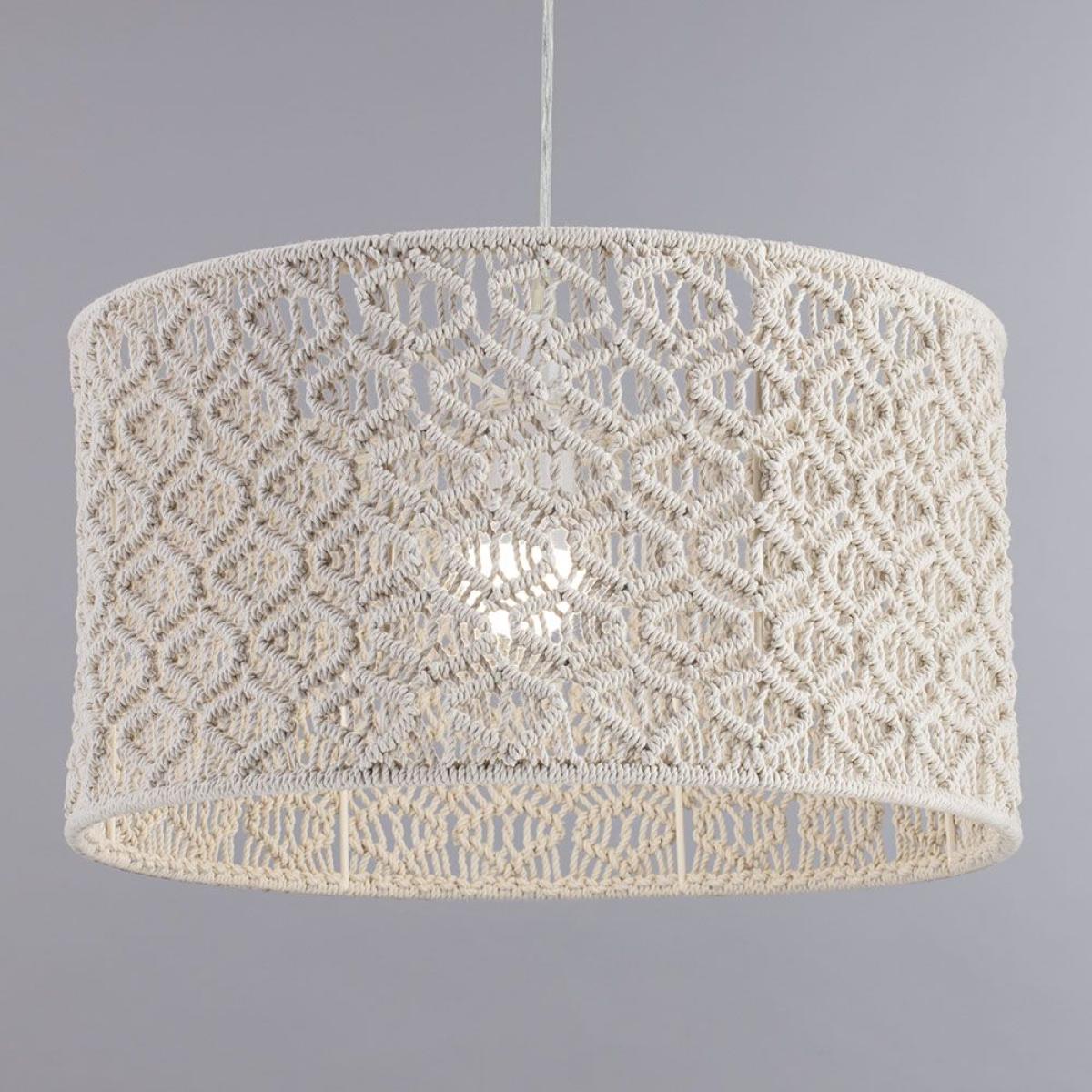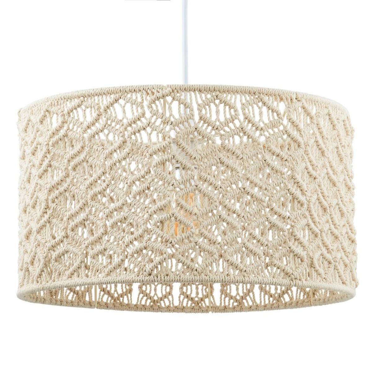 I love the look of the large macrame shade in this setting - it adds lovely texture and a relaxed, boho feel without overwhelming the space. It works particularly well in interiors that have a natural or coastal theme, where its ivory tone complements neutral palettes and woven furniture. For styling tips, consider hanging it in a room with plenty of natural light to highlight the intricate weave - it’s perfect over a dining table or a cozy corner reading nook. To keep the look balanced, pair it with other natural materials like jute rugs, rattan chairs, or wicker accessories. It’s a versatile choice that can seamlessly enhance both contemporary and more eclectic interiors.