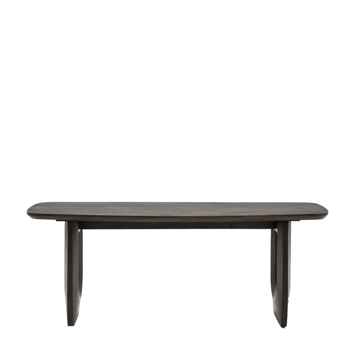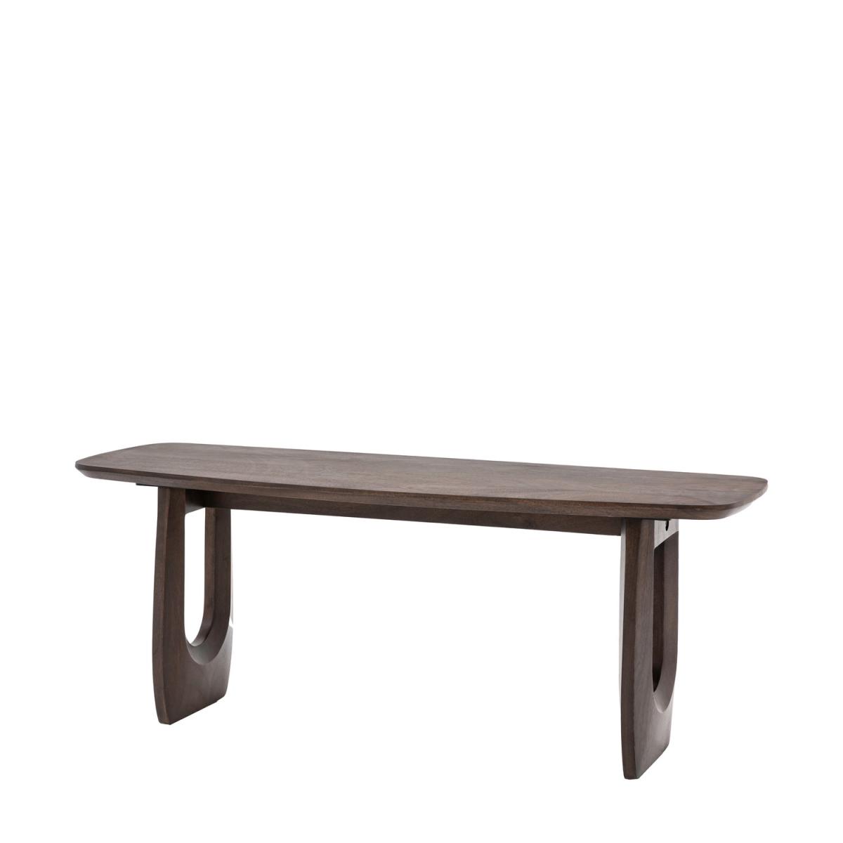 Dimensions:W120 x D40 x H45 cm Bold and retro this dining bench pairs perfectly with our matching dining table for a completely cool 70s inspired interior. Richly grained Mango wood has been darkly stained to enhance the natural properties of the wood, but it's the striking U shaped carved legs of this bench that really catch your eye. Coordinating further pieces also available. Features: Walnut stained mango wood U shaped carved legs Seat Height 45cm Seats 2 Matching items available Some assembly required