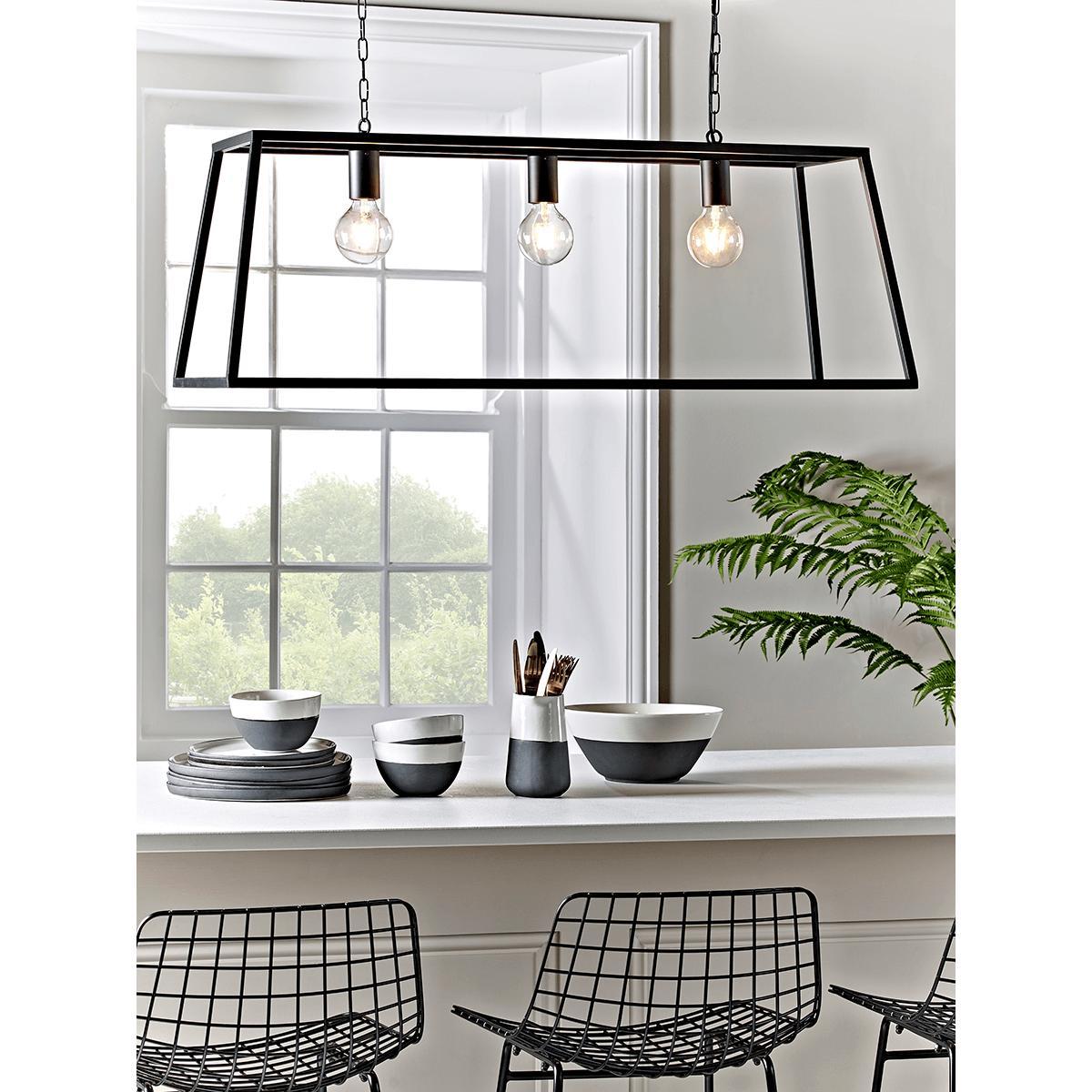 Inspired by our bestselling. Metal Trapeze Pendant,. This larger version with space for three bulbs is fabulous for achieving an industrial kitchen or dining room look. Hang above your breakfast bar or dining table for interior style perfection.
