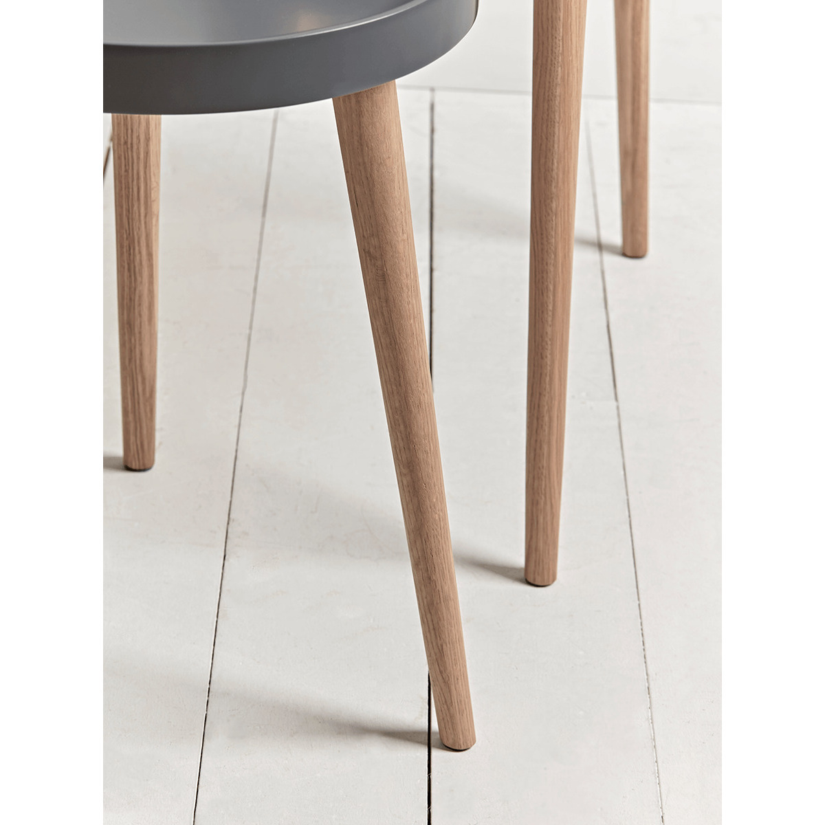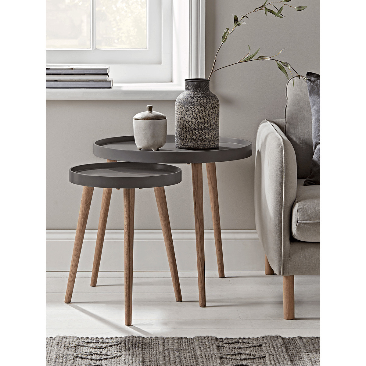 The epitome of elegant Scandi style, our Mila side tables in small and large will add a decorative and practical touch to any room in your home. Each table features a round top with a lipped edge, painted in the perfect shade of charcoal grey, and three slender oak legs. Each sold separately.
