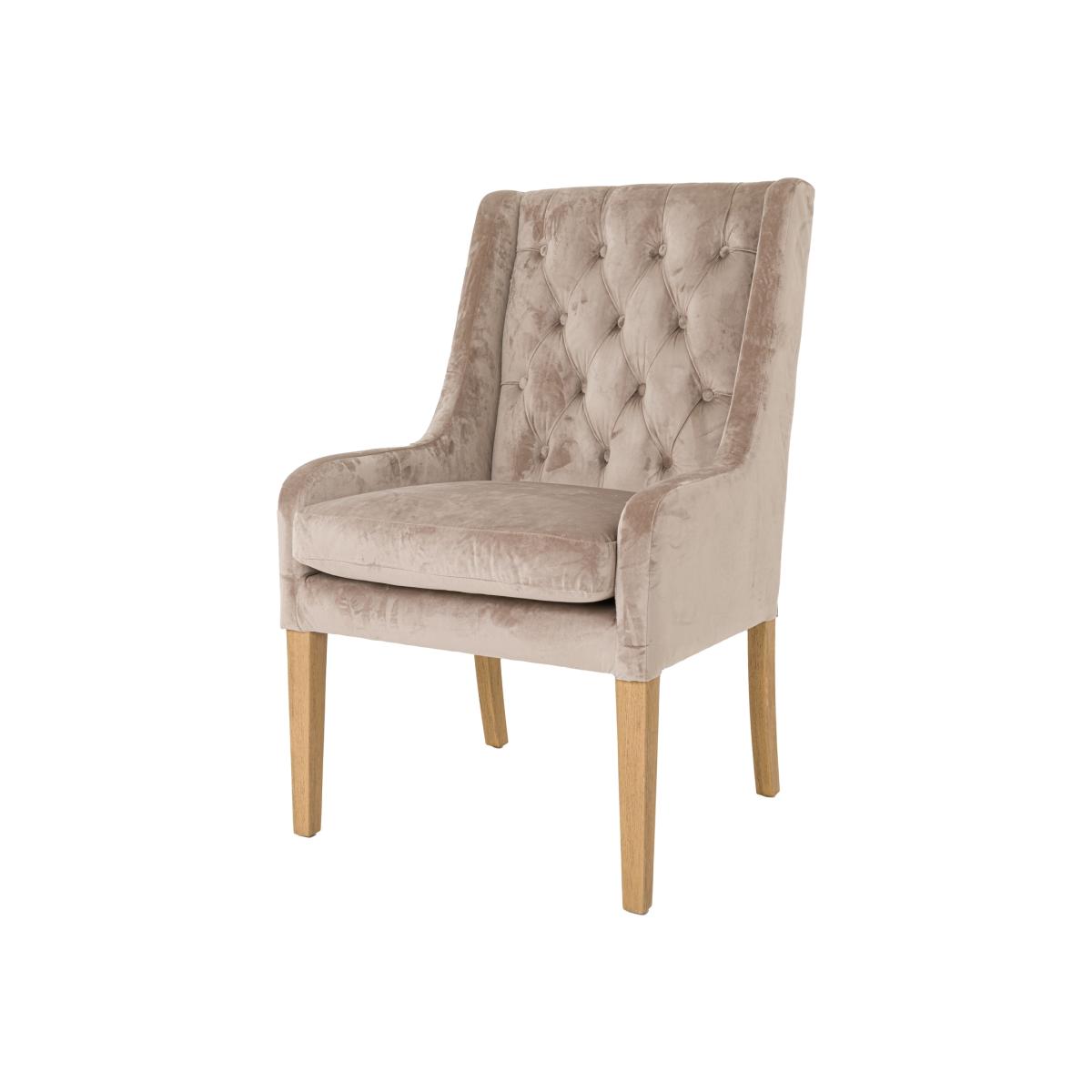 The stunning Henley dining chair is upholstered in a luxurious mink velvet fabric. The sturdy wooden legs and buttoned back are the perfect finishing touches. Pair with your favourite dining table and dine in comfort.