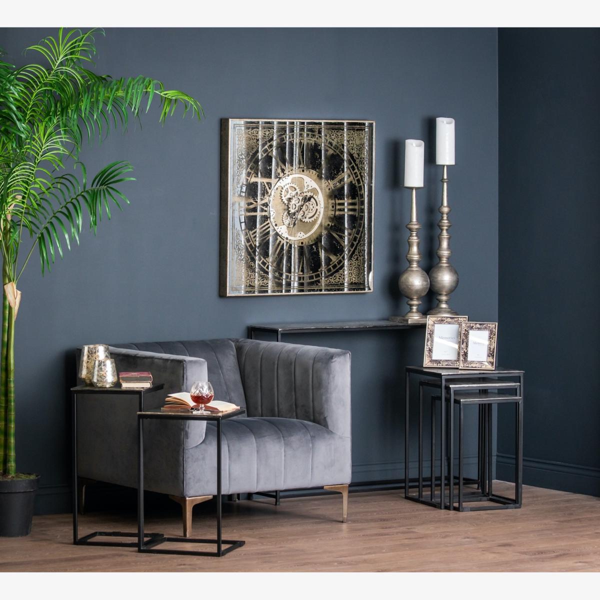 I love this oversized mirror clock because it adds a striking focal point without overwhelming the space. Its sleek silver frame pairs beautifully with modern, contemporary, or even boutique-style interiors. It's versatile enough to work in living rooms, hallways, or bedrooms where a statement piece is needed to create visual interest. For styling, consider placing it above a console table or sofa to see its full effect, and pair with metals or accessories in a similar finish for cohesion. It also works well in rooms with darker or neutral walls, offering a reflective surface that boosts light and openness while adding a touch of modern elegance.