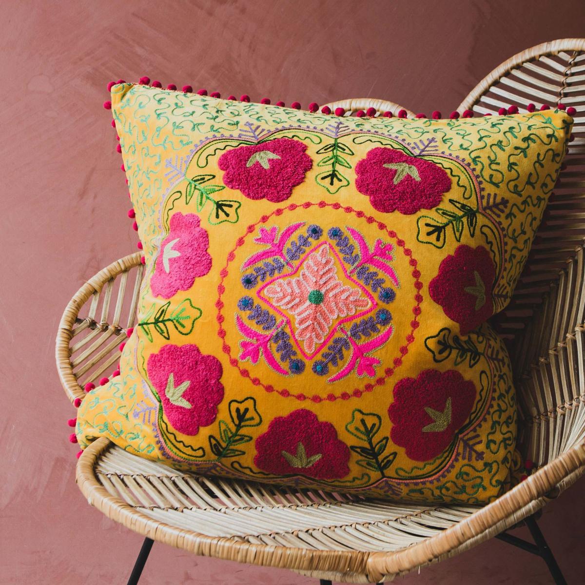 A big fan of this mustard velvet cushion - it’s a vibrant and textured piece that adds warmth and personality to any space. I love how the boho embroidery and colour palette make it versatile enough for both relaxed living rooms and eclectic bedrooms. It works especially well when paired with neutral tones or layered with other patterned textiles for a layered, inviting look. Practical styling tip: to really let it shine, keep surrounding cushions simple or tone in with other warm shades, and place it on a sofa or armchair where its colour and details can be appreciated. It’s perfect for injecting a pop of colour and a touch of boho flair into your interiors.