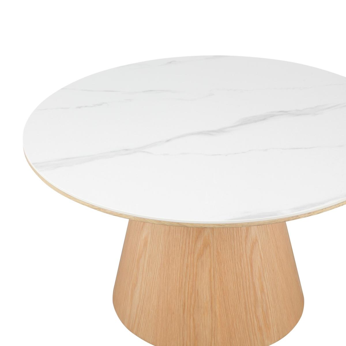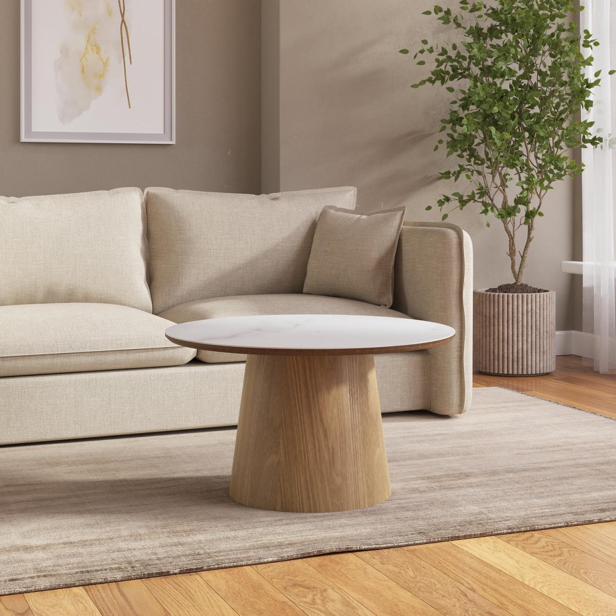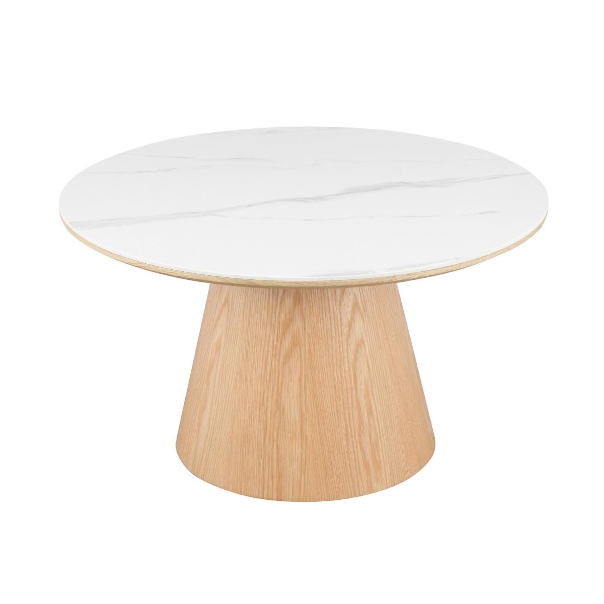 The heat and scratch-resistant ceramic top offers both durability and timeless style. The oak veneer pedestal base adds an elegant touch and ensures stability. Designed with both style and function in mind, this coffee table features a generously sized top – perfect for hosting drinks, displaying décor, or keeping everyday items within reach. The white matte marble effect ceramic top adds a luxurious touch while the natural oak veneer brings warmth and balance blending seamlessly with a variety of interior styles. Built to last with a scratch-proof ceramic top and a sturdy oak base, ensuring both beauty and functionality. The Malia Coffee Table is a perfect fusion of modern style and elegance, designed to elevate your living space. Featuring a ceramic top that adds a luxurious touch that is both heat and scratch-resistant, it’s supported by a sleek natural oak veneer pedestal base that adds a touch of sophistication. The distinctive ceramic top brings a unique and stylish touch to any room. Due to the natural characteristics of the ceramic, marble effect, each table top is unique and may vary to images shown on site