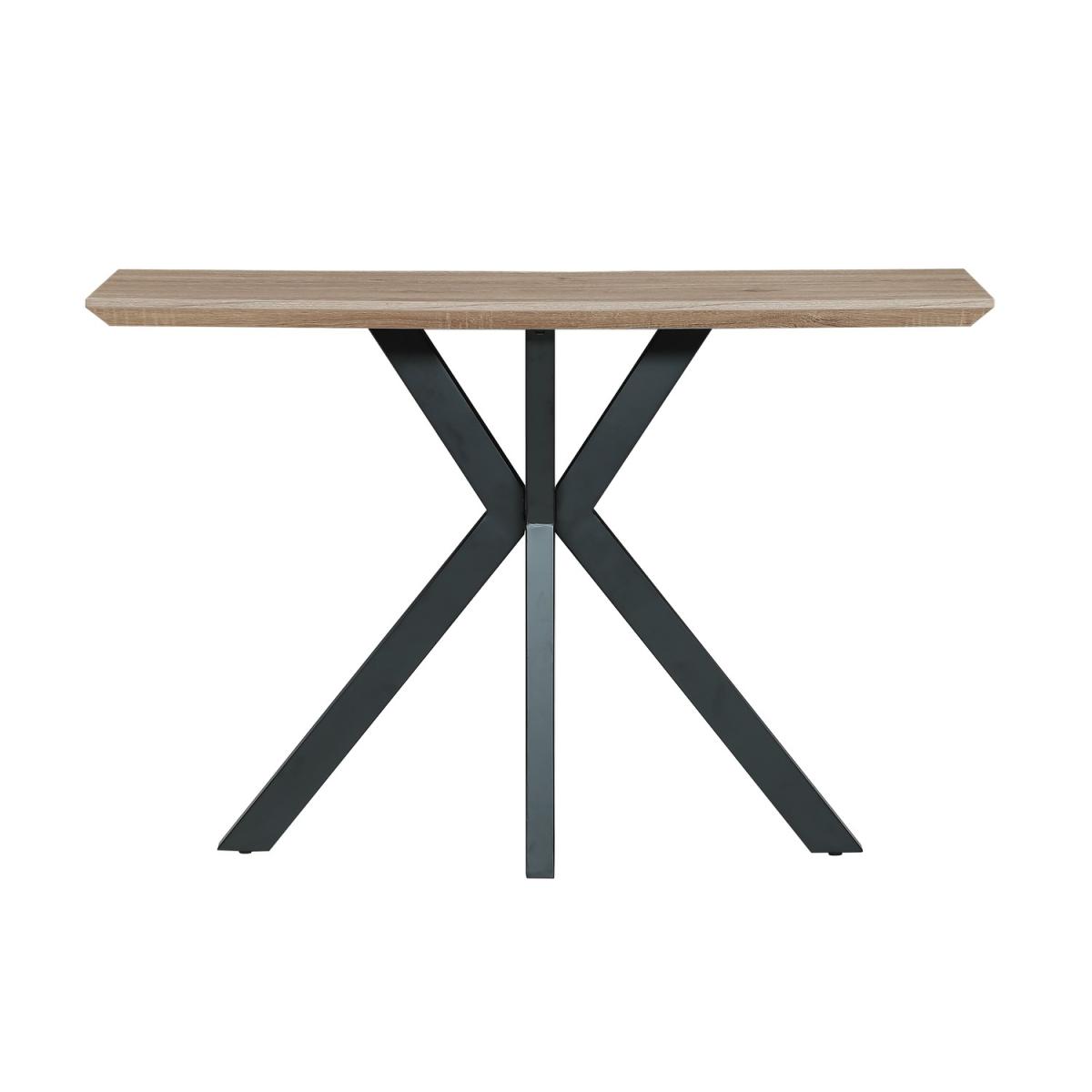Dimensions:80 H x 120 W x 40 D cm The Liberty console table has a lot to shout about. Smart Top Technology (Heat, Stain and Scratch resistant) applied to the wood effect tops, three fabulous finishes in Oak, Grey and Light Walnut. Features: Wood effect top in oak Heat Stain and scratch resistant Black powder coted metal legs Matching items available Assembly Required