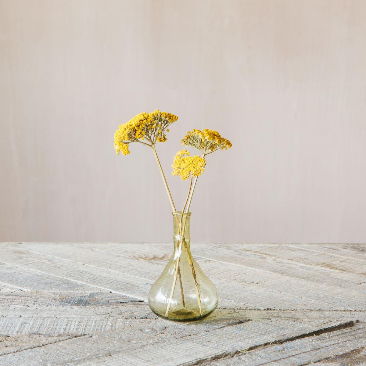 In a deep olive green, this antique inspired vase is ideal for cascading foliage and jewel coloured flowers. Available in two sizes. Small (MBX1067):H13 x Diameter 8cm. Large (MBX1070):H19 x Diameter 11cm. Made of glass. Due to the handmade nature colour and size may vary.