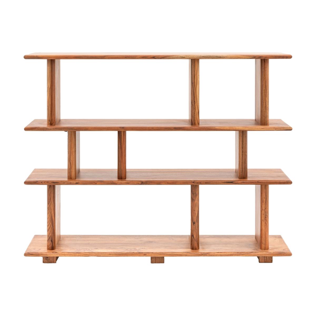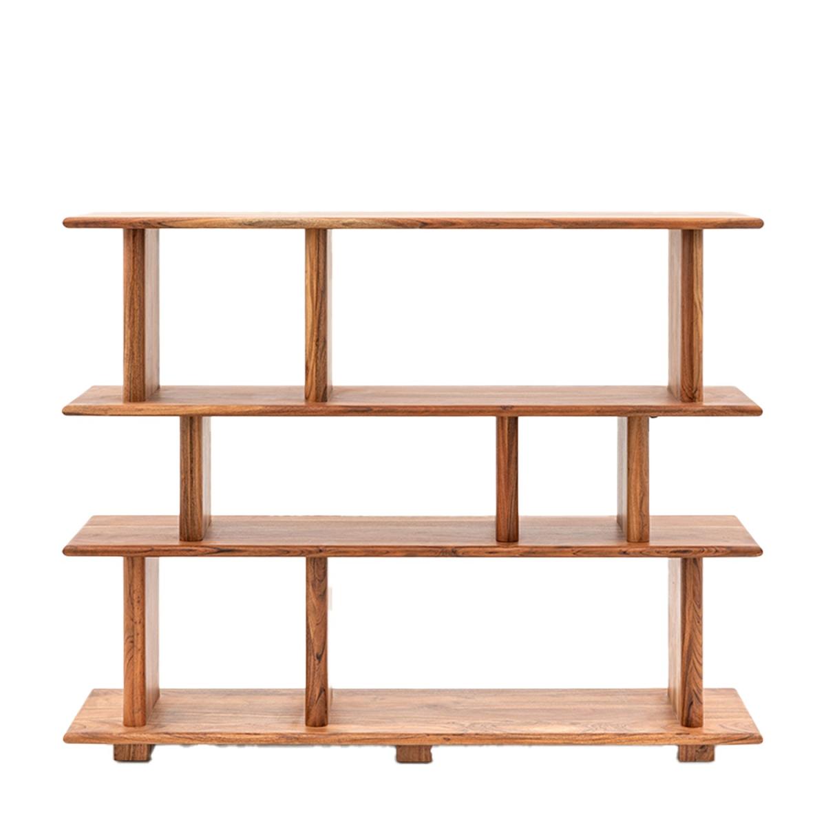 Dimensions:W150 x D38 x H117 cm Made in rich and deeply grained Acacia wood this open shelving unit is perfect for showing off your favourite books and artistic accents. The 4 wide shelves are unevenly broken up creating a unique look that will be perfect wherever it is placed. Coordinating further furniture pieces also available.. Features: Natural acacia wood Rectangular Storage 4 wide shelves Matching items available Some assembly required