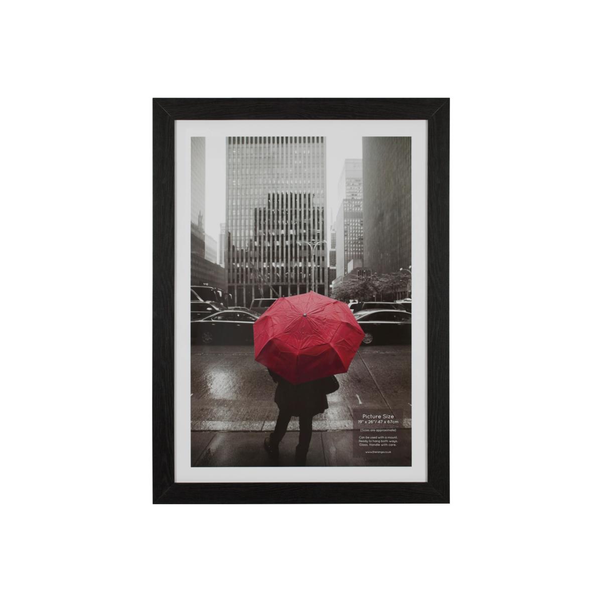 This black large poster frame is a versatile choice that complements a range of interior styles, from minimalistic modern to industrial or monochrome schemes. Its bold frame helps to anchor artwork or photography, making it a statement piece on its own or part of a gallery wall. I love pairing it with monochrome prints or striking imagery to create visual impact, especially in urban or contemporary spaces. Practical styling tips include layering with other frames for a curated look, or keeping it simple with an impactful image like the cityscape with the red umbrella, which adds a pop of colour and draws attention. It's perfect for adding personalised flair to living rooms, offices, or entries without overwhelming the space.