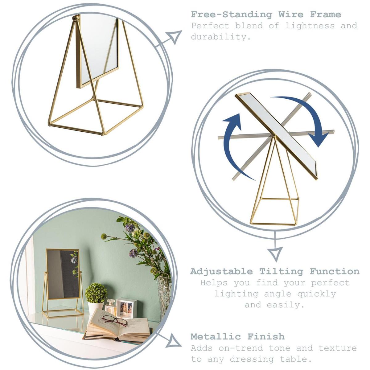 Add some glam to your dressing table with our Harbour Housewares Vanity Mirror collection. They say a tidy office leads to a tidy mind. By that same token, a 'Grammable dressing table can provide the perfect foundation to your morning make-up routine. The metallic wire frame of our vanity mirrors makes them a sleek, chic centrepiece in any bedroom or bathroom light enough to easily move and manoeuvre, yet sturdy enough to last a lifetime. Each mirror can be tilted to help you find your perfect lighting angle - ideal if you need to move between rooms and surfaces!Available in 2 sizes and colours - mix and match to create your perfect style ensemble!
