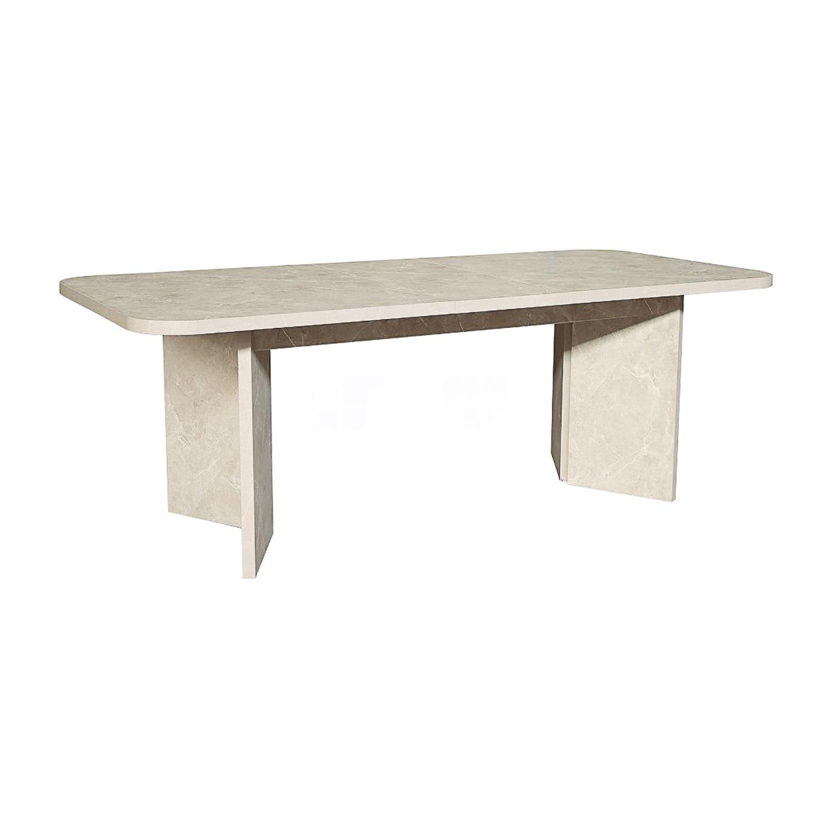 The Marble-Effect Extendable Dining Table Set with Isla Chairs offers a blend of modern elegance and everyday practicality, making it a sophisticated focal point in any dining room. Designed with a smooth leaf extension mechanism, the table easily expands from a 6-seater to an 8-seater, making it perfect for family meals or entertaining guests. The marble-effect tabletop delivers high-end appeal with durability that suits busy homes, thanks to its heat-, scratch-, and stain-resistant finish. The Isla dining chairs feature cream chenille upholstery, adding a layer of tactile softness and visual warmth. The brass frame ensures stability and durability, while the brass frame adds a modern, stylish touch. With its neutral colour palette and bold silhouette, this dining set complements a range of interiors, from modern and minimalist to classic and transitional. It’s the ideal set for those who value both form and function, bringing elevated design and practical features to the heart of your home. The Marble-Effect Extendable Dining Table Set with Isla Dining Chairs offers the perfect balance of elegance, practicality, and comfort. The table’s luxurious marble-effect finish and bold architectural legs bring a high-end, designer feel to your home, while the easy-leaf extension mechanism ensures it adapts effortlessly to everyday dining or larger gatherings. Paired with the Isla chairs’ soft cream chenille upholstery and brass frame, this set not only elevates the look of your space but also provides the comfort and durability needed for modern family life, making it a versatile and lasting centrepiece for any contemporary home.