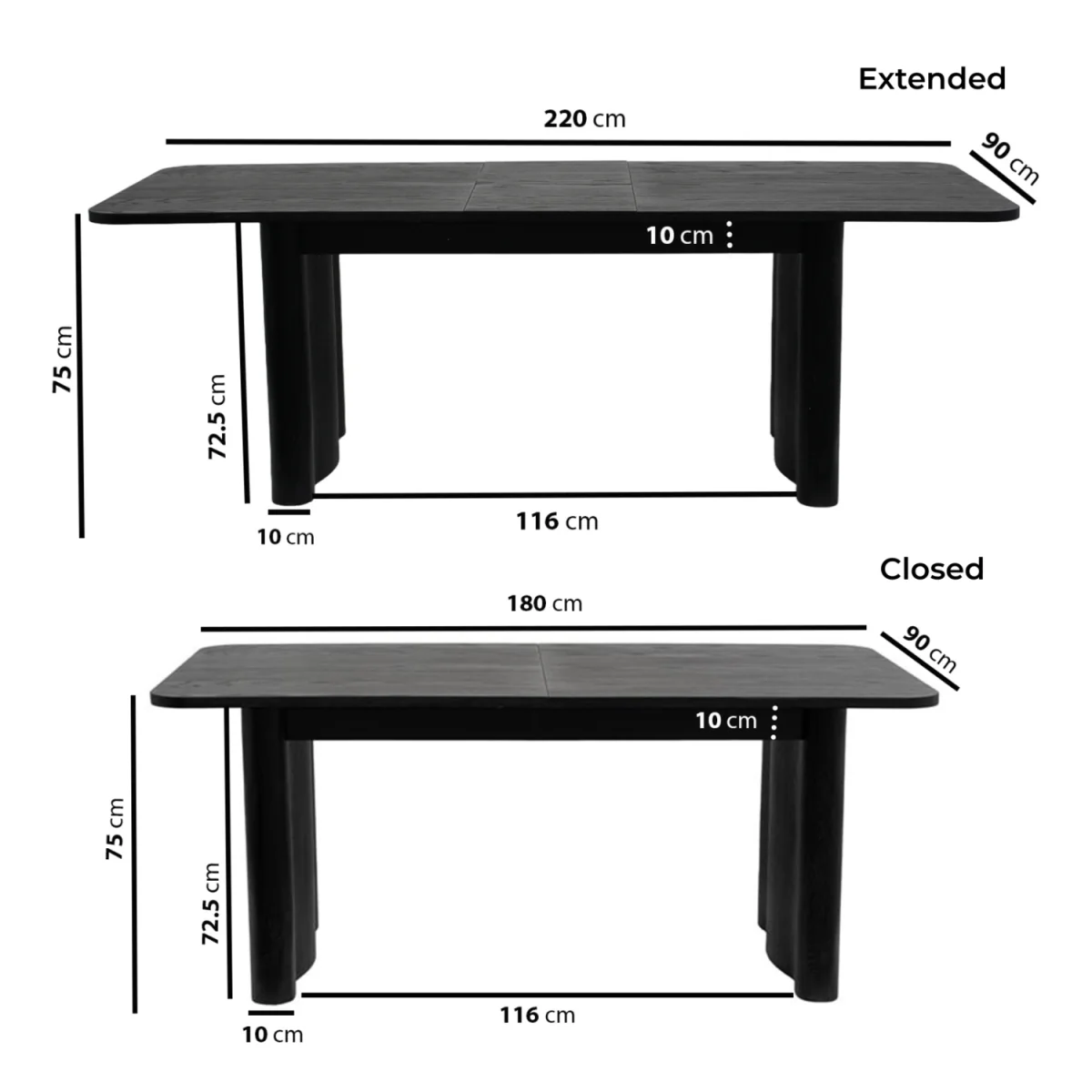 The Wave & Logan dining set combines a modern black extendable dining table with sage green upholstered dining chairs, offering a blend of contemporary design and classic comfort. The unique wave-inspired legs offer an artistic touch, elevating the table’s overall design while providing sturdy support The cleverly integrated mechanism allows the table to expand in seconds, perfect for hosting unexpected guests or weekend dinners. Soft, durable, and easy to clean, the sage green upholstery adds a modern industrial touch to your dining space. Rich in texture and depth, the black finish adds sophistication while allowing the natural wood grain to subtly show through. Whether you’re hosting dinner, gathering with friends, or simply enjoying your morning coffee, the Wave rectangular extendable dining table and Logan dining chairs deliver the perfect blend of style, comfort and sustainability. With its bold black finish and sculptural wave-inspired legs, it’s more than just a table, it’s a design statement. Paired with the Logan Dining Chairs, this set is as practical as it is stylish. The curved backrests offer ergonomic support while elevating the design, creating a sophisticated and comfortable seating experience. The sage green faux leather upholstered seat brings a elegant contrast, complementing the black wood, while the black metal legs add a sleek and contemporary finish. Designed to seat six guests, this dining set is perfect for everyday meals, dinner parties, or casual gatherings. Together, they form a thoughtfully designed set that enhances everyday living and makes a lasting impression in any modern home.