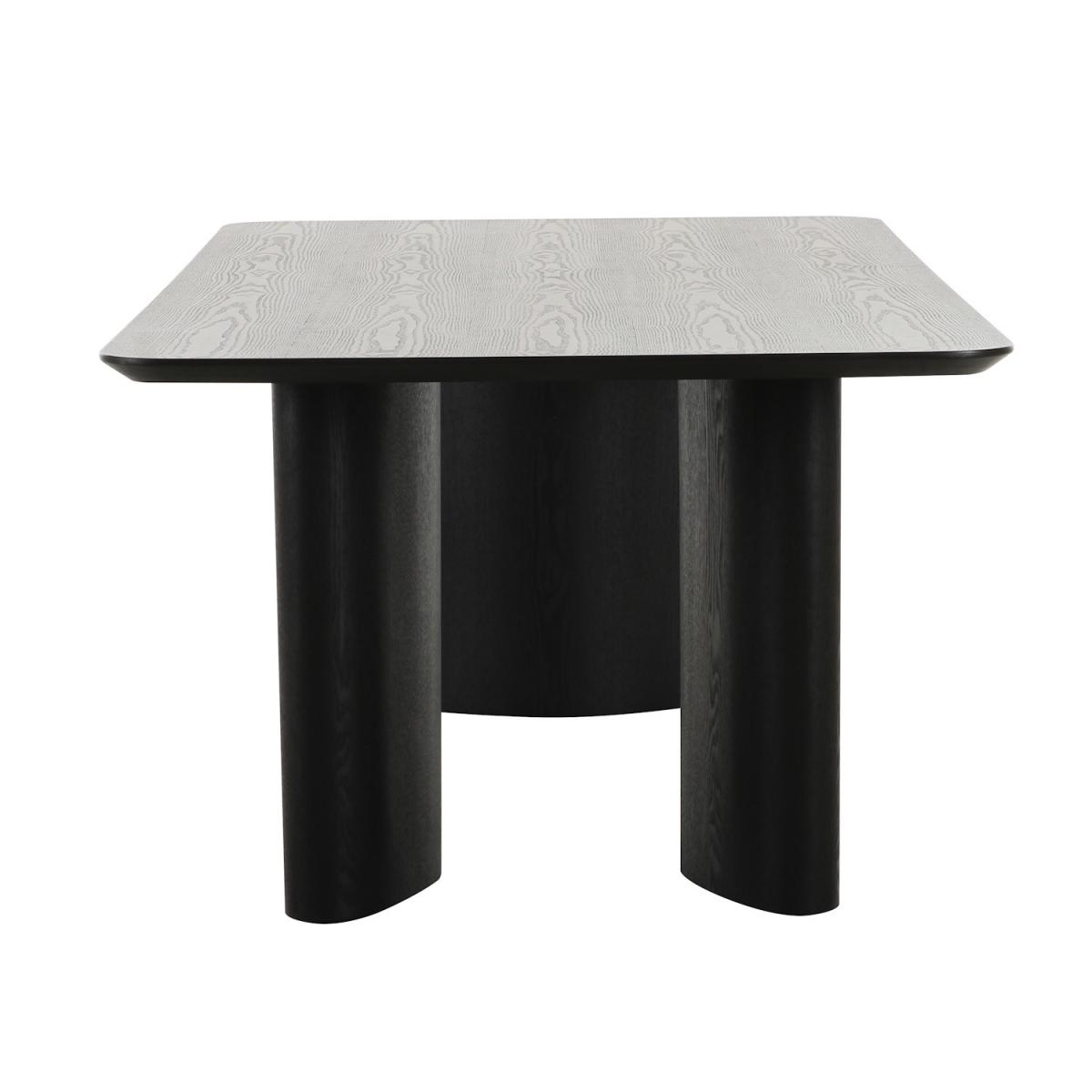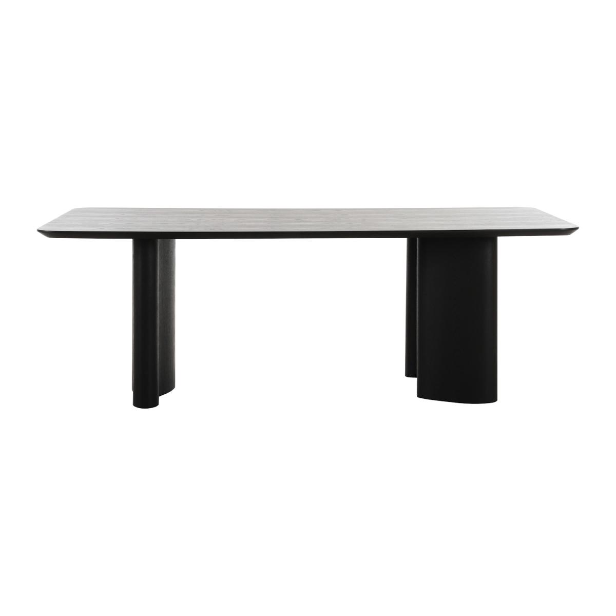 The robust leg design creates a powerful architectural focal point, adding dynamic movement and contemporary edge to any dining space. The large rectangular surface comfortably seats six, offering plenty of room for family meals and entertaining, while the sleek black finish adds sophistication. Its solid rubberwood legs are painted in black, offering strength, stability and a high-end finish that complements the leather beautifully. The combination of chunky legs and a sleek tabletop make it a statement piece that fits effortlessly in modern, urban, or electric homes. The gently curved back and plush seat ensure support and relaxation whether you’re reading, unwinding or entertaining guests. Elevate your dining area with the Troy Black Wooden Dining Table. Featuring strong, sculptural legs and a sleek black finish, this 6-seater table offers plenty of room for meals, celebrations, and everything in between. Paired with Eren dining chairs, crafted from genuine leather, these chairs bring an understated luxury into your home. Its ruched backrest adds subtle texture, while the smooth curves and traditional shape nod to timeless design. This dining set is perfect for everyday meals, dinner parties, or casual gatherings. Together, they form a thoughtfully designed set that enhances everyday living and makes a lasting impression in any modern home.