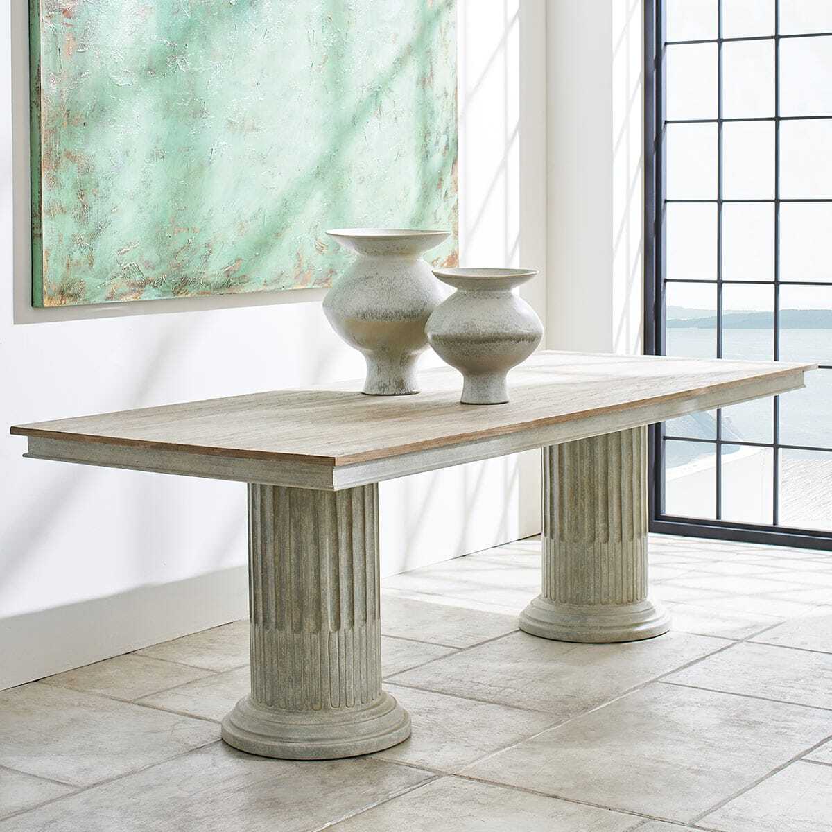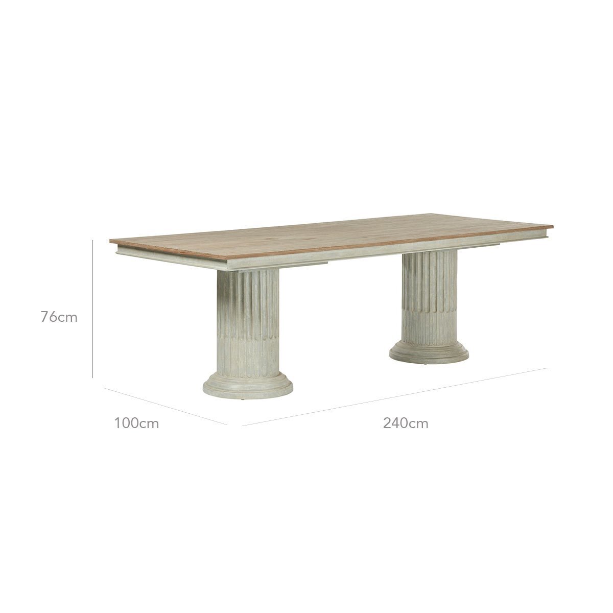 Taking its design cues from Ancient Rome, the Kalivia is characterised by its large circular legs, hand-carved to resemble Corinthian columns, and rectangular table top, beautifully crafted from a mixture of woods. Not only is this dining table incredibly smart, but it is also very tactile. If you run your hand over its surface, you will feel the natural knots and grooves within the wood. A striking piece, fit for a Roman banquet.