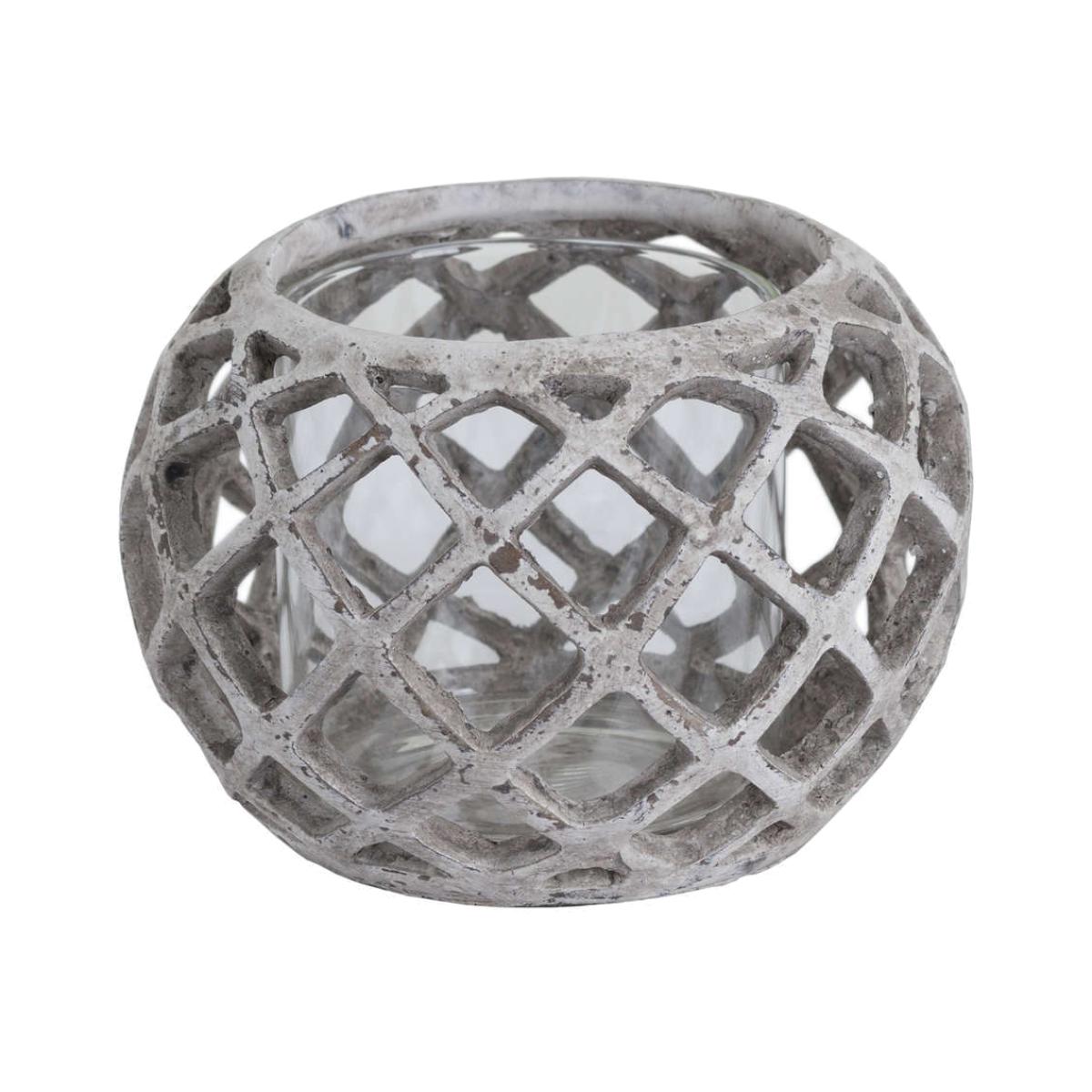 Large Round Ceramic Lattice Hurricane Lantern - Stone