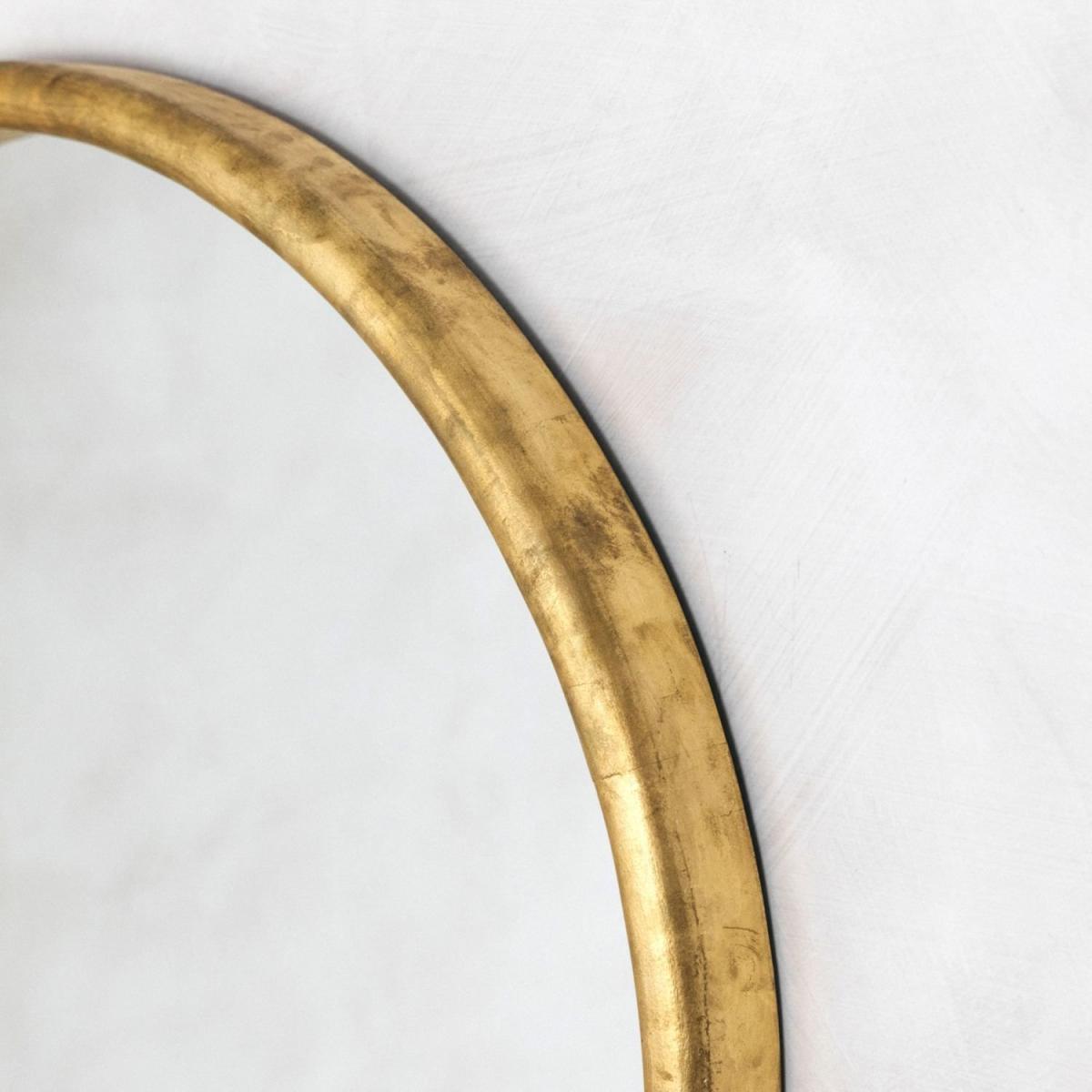 A chic ciruclar wall mirror with a stylish gold foil frame crafted from solid mango wood.