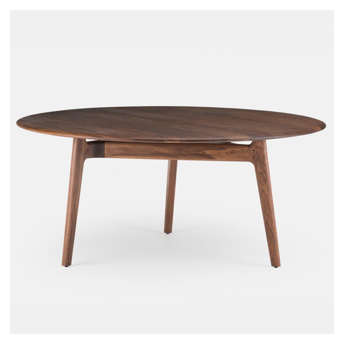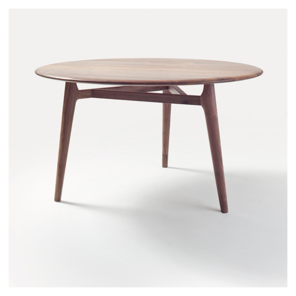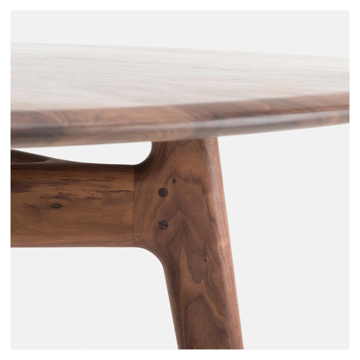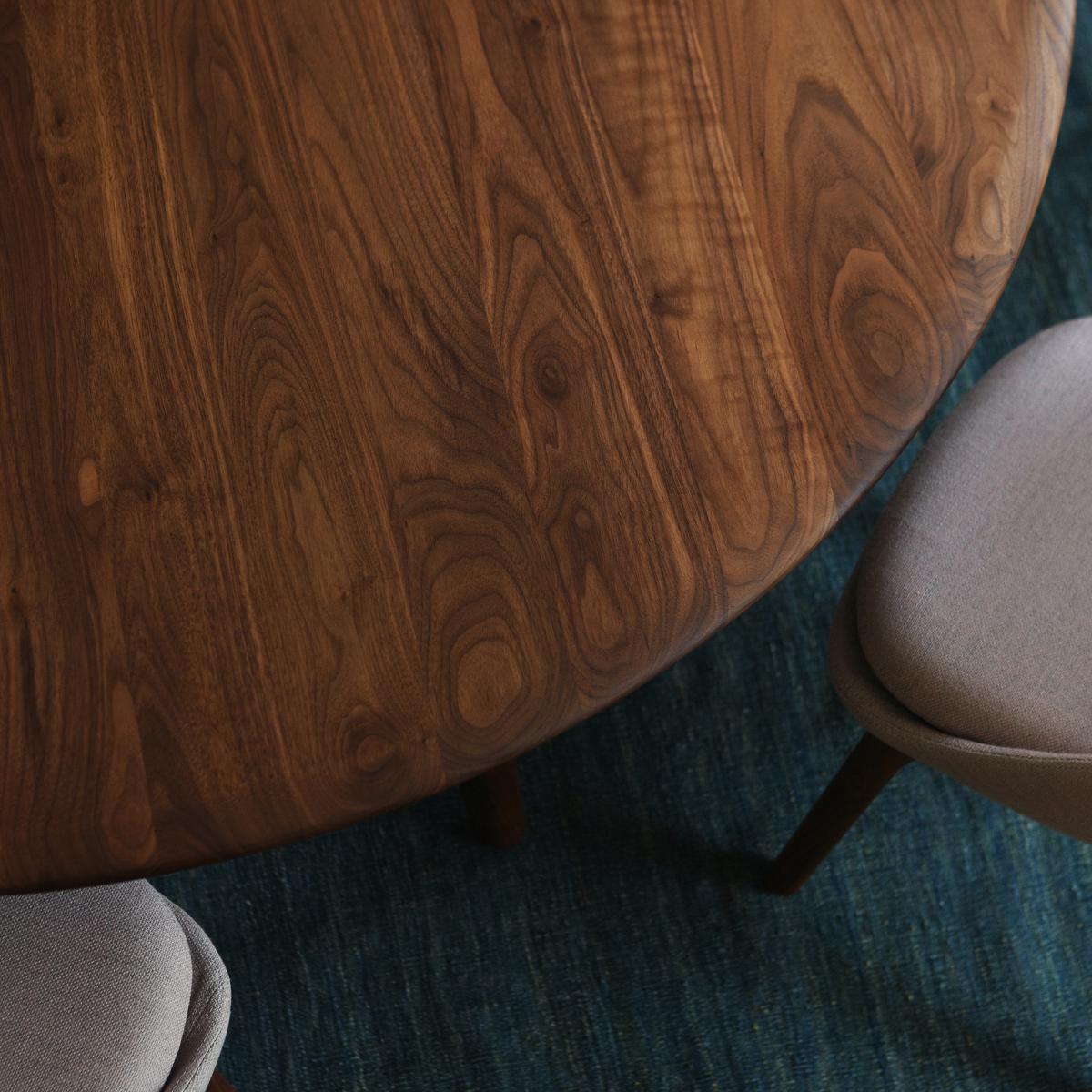 Designed by Shanghai-based design collective, neri & hu, the round Solo dining table in a large size focuses on purity of form, with the grain of its natural black walnut construction taking centre stage, enhanced by the structure's clean lines and curves. The Solo dining table's American black walnut material is treated with premium natural Danish oil, enhancing the grain for a dining solution with contemporary style. Complete with gently tapered legs, neri & hu's round Solo dining table offers clean lines and sophisticated proportions and makes a chic addition to any space.