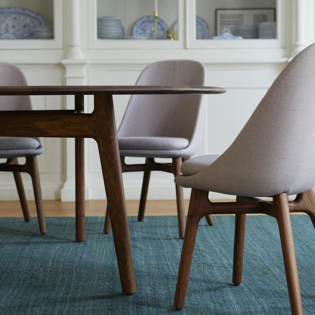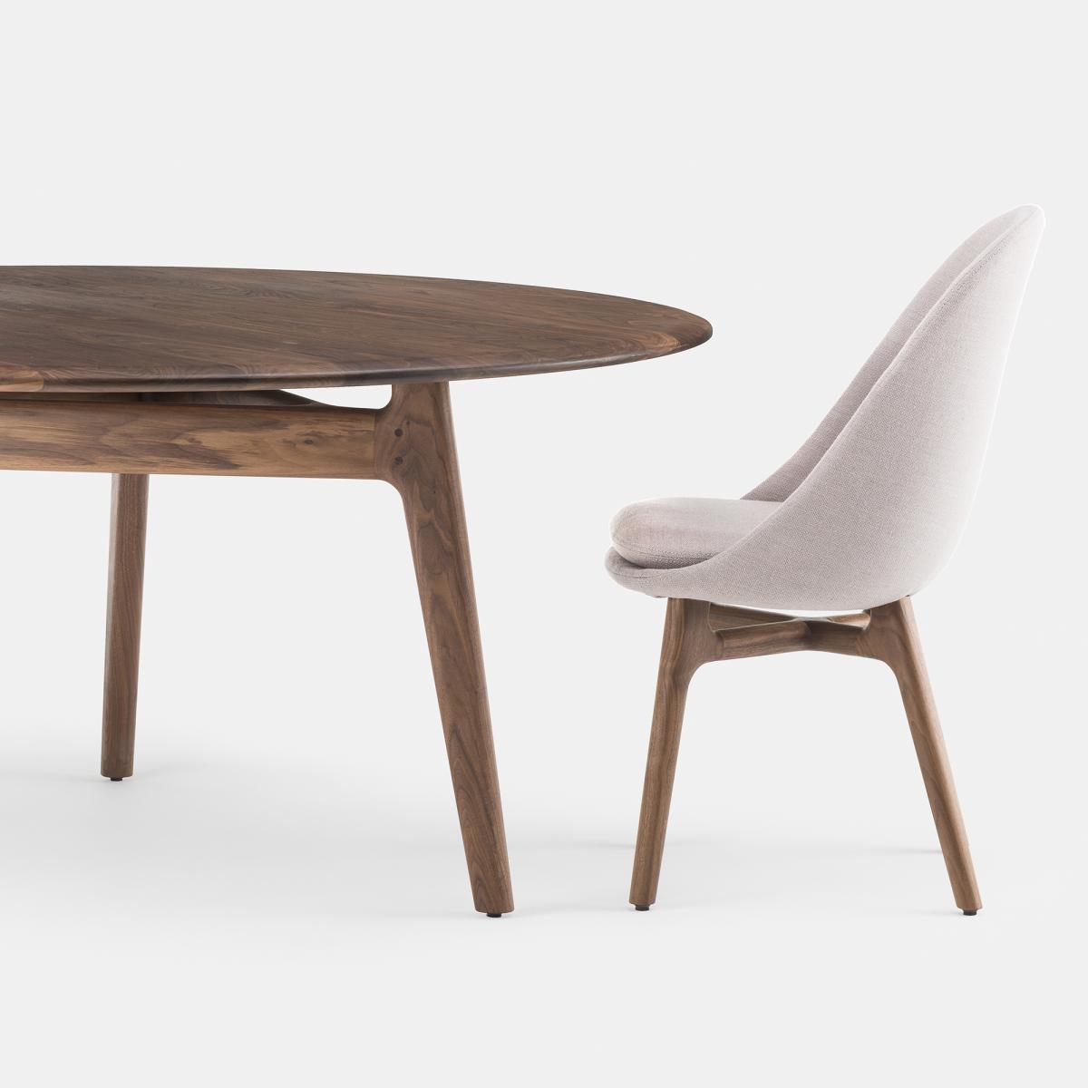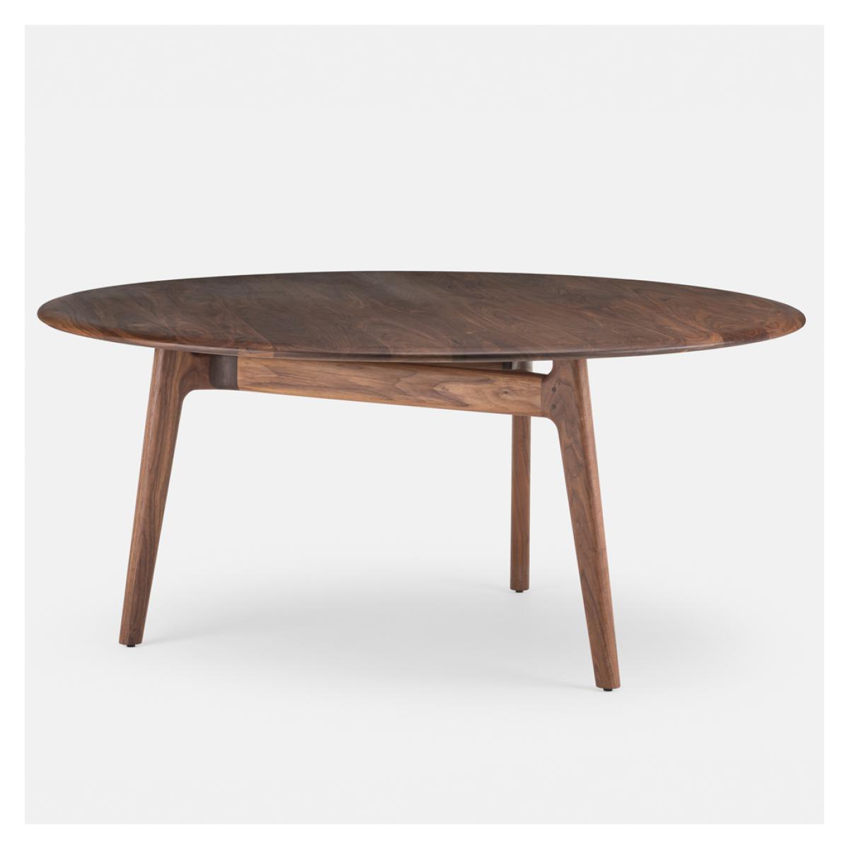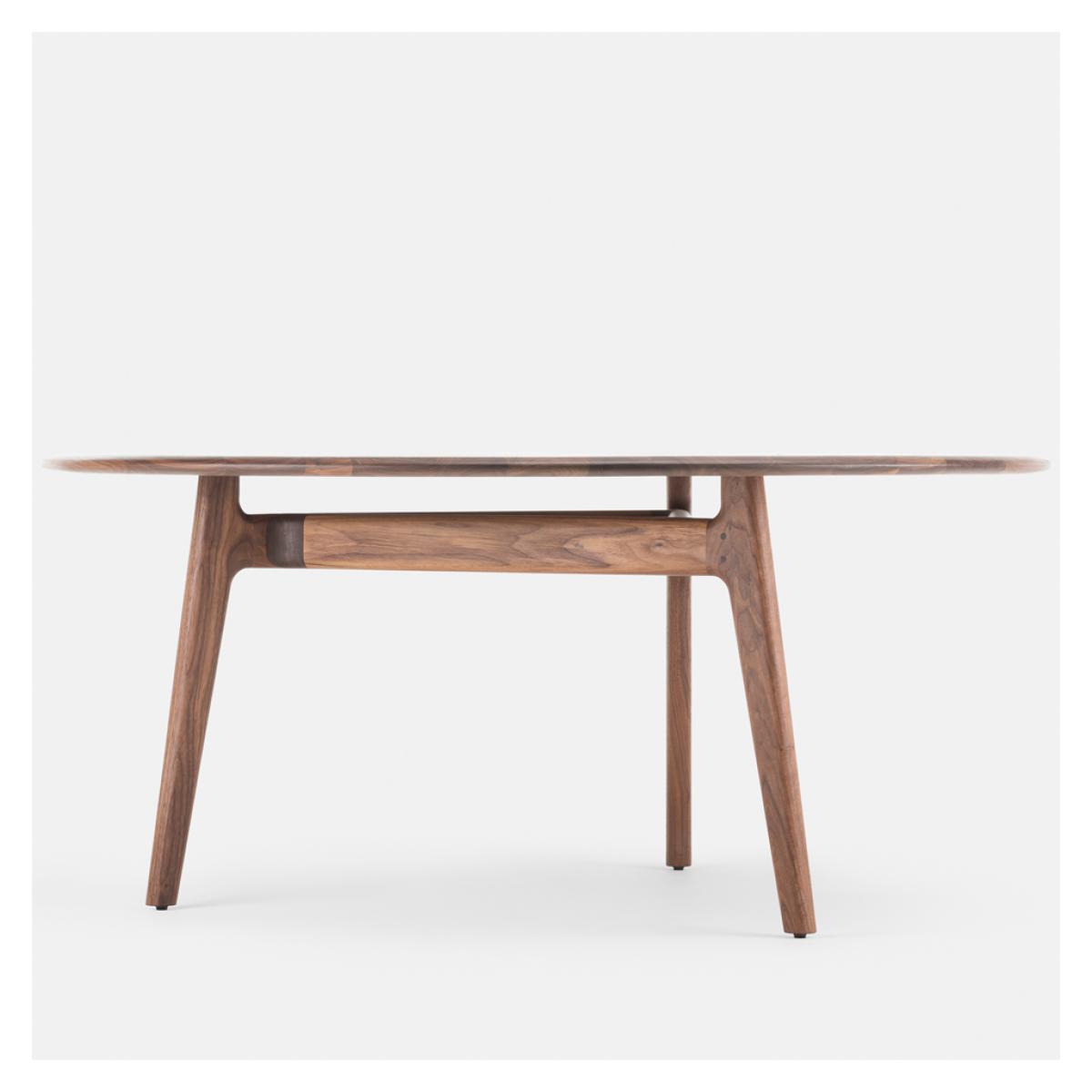 Designed by Shanghai-based design collective, neri & hu, the round Solo dining table in a large size focuses on purity of form, with the grain of its natural black walnut construction taking centre stage, enhanced by the structure's clean lines and curves. The Solo dining table's American black walnut material is treated with premium natural Danish oil, enhancing the grain for a dining solution with contemporary style. Complete with gently tapered legs, neri & hu's round Solo dining table offers clean lines and sophisticated proportions and makes a chic addition to any space.