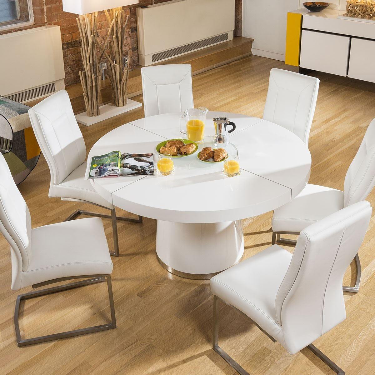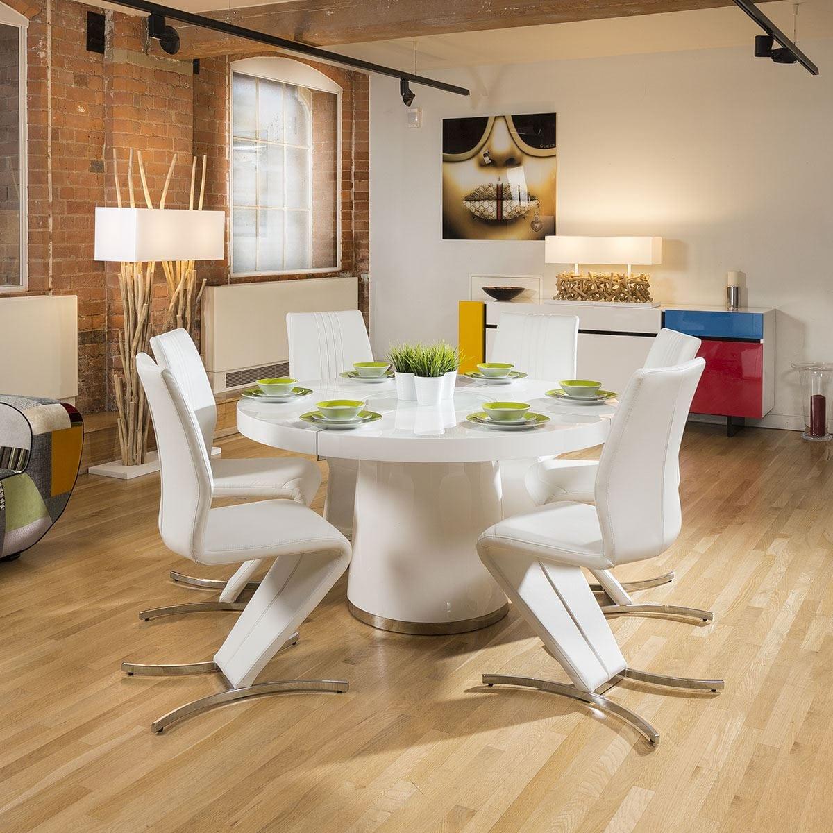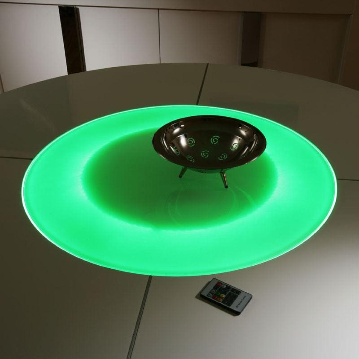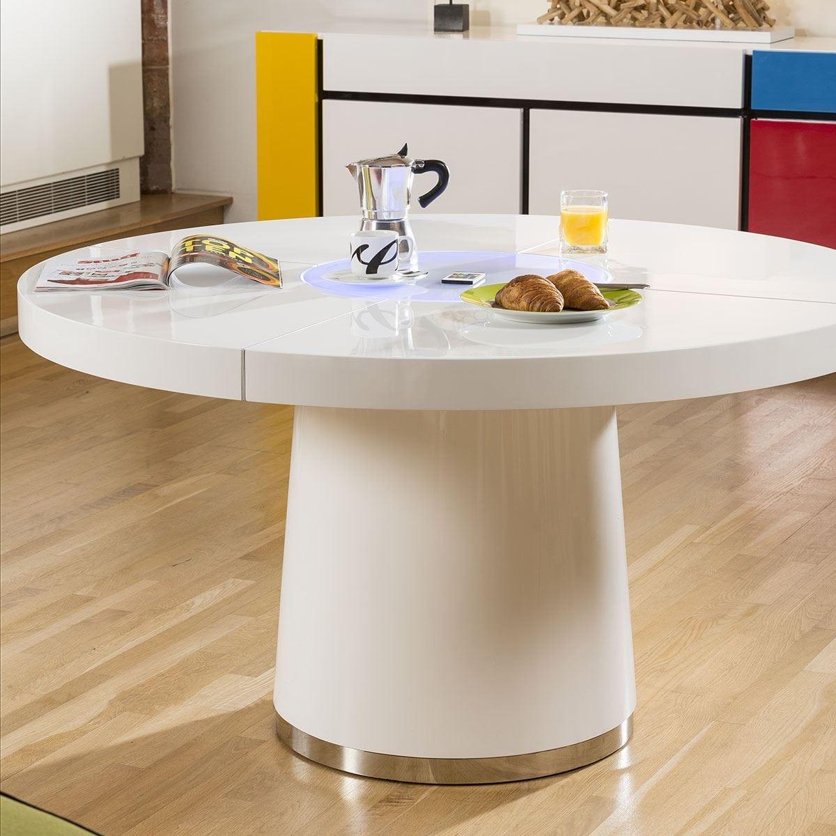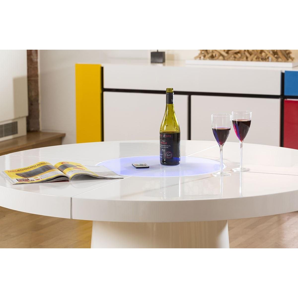 Large Round White Gloss Dining Table Glass lazy susan LED lighting 1.4