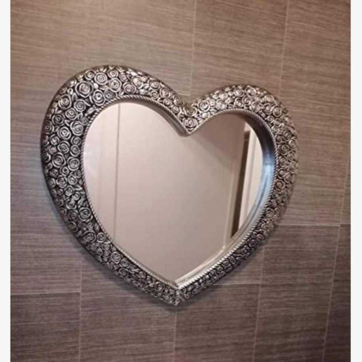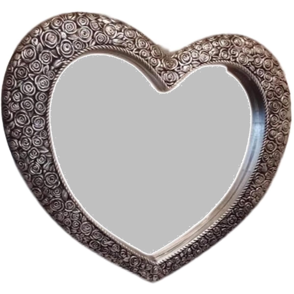 Large Silver Heart Mirror Antique Style - Silver