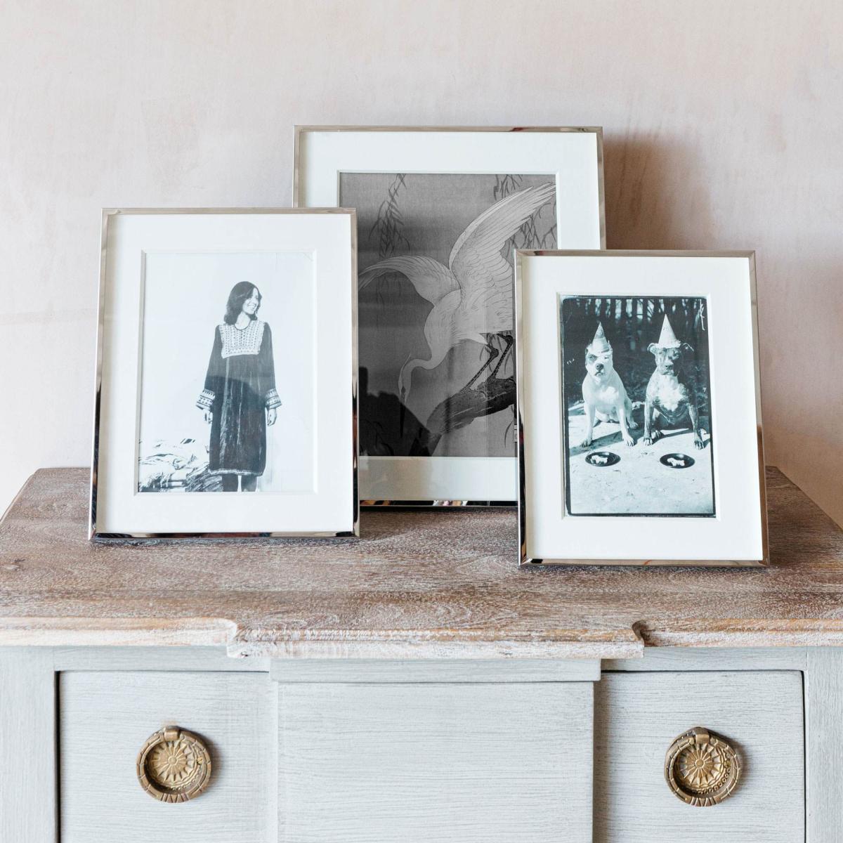 Classic and chic, these picture frames feature a deep-set silver frame and picture mount. Perfect for tables or walls.