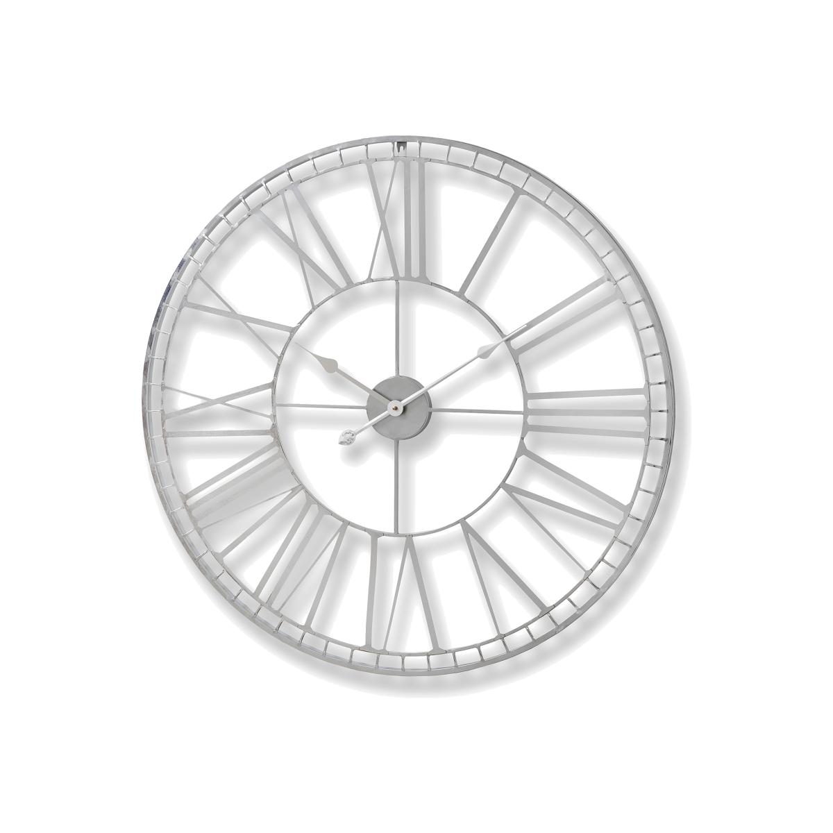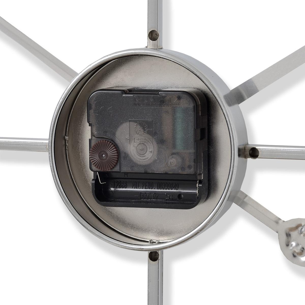 This large skeleton clock in nickel finish is an on trend clock that serves as a beautiful focal point for any room.