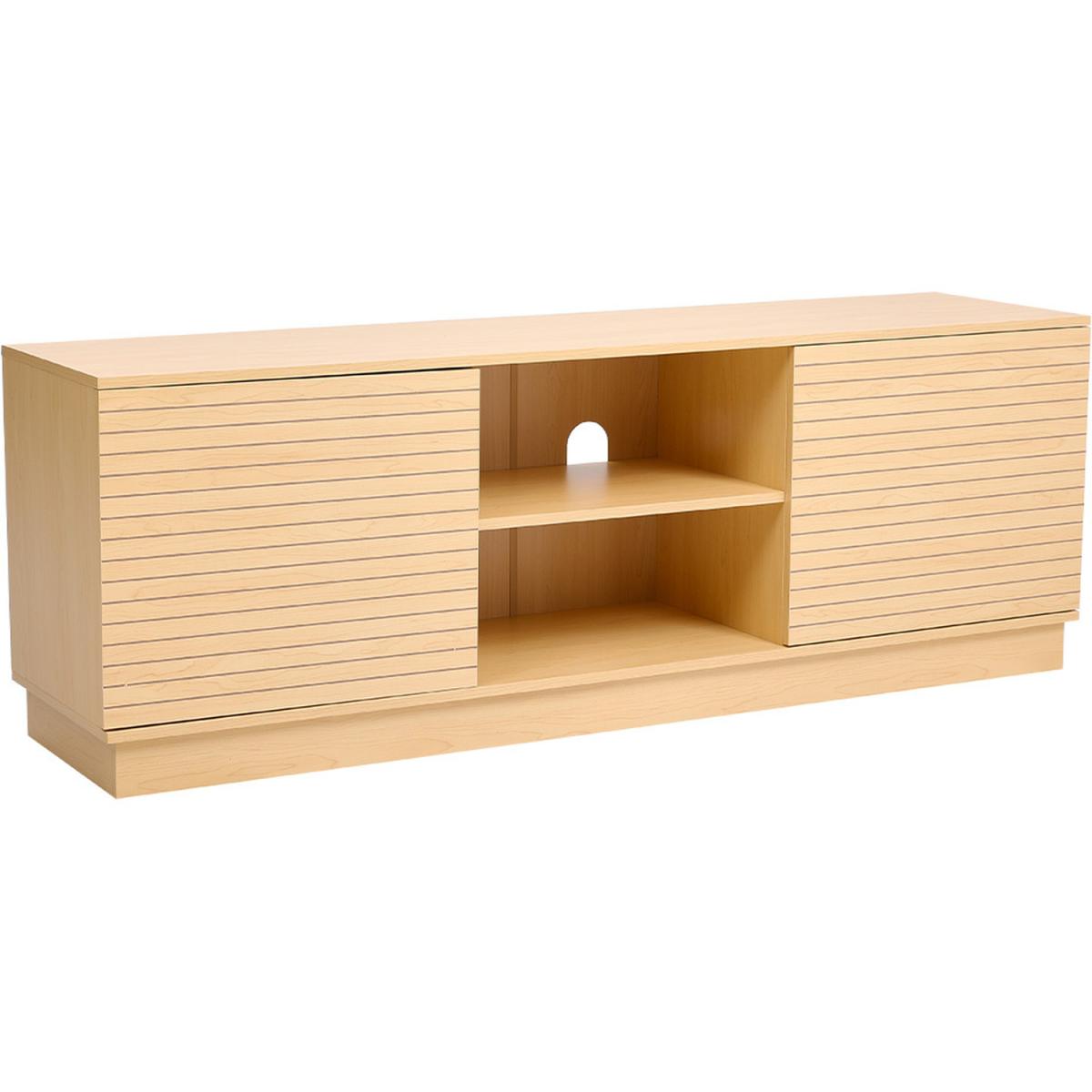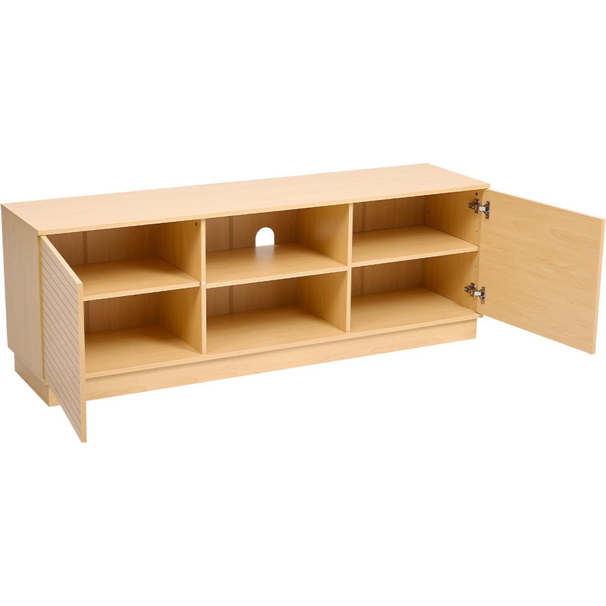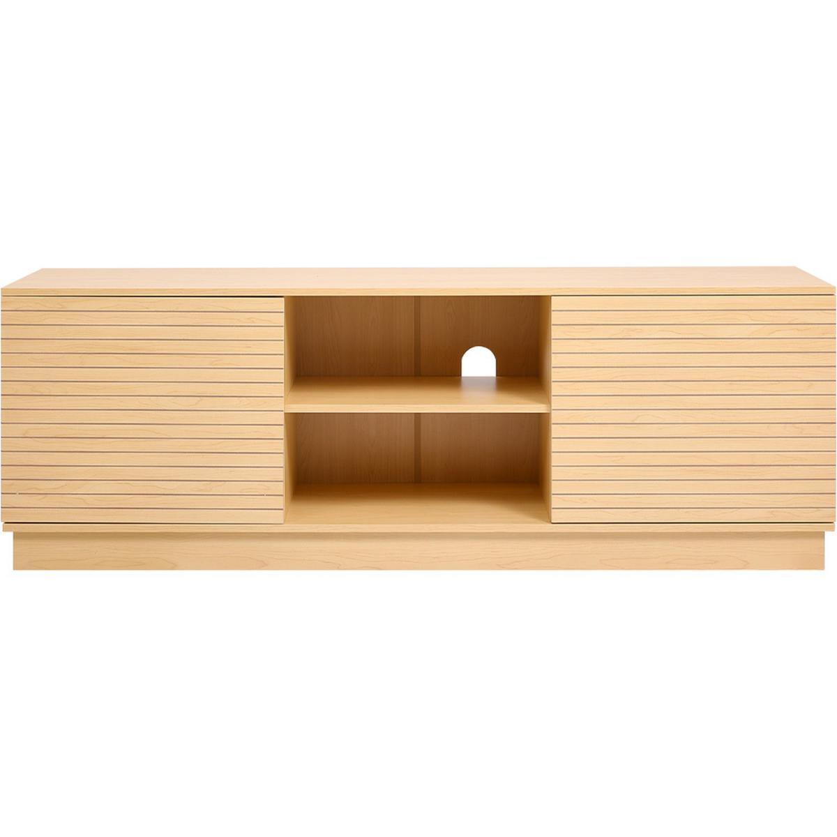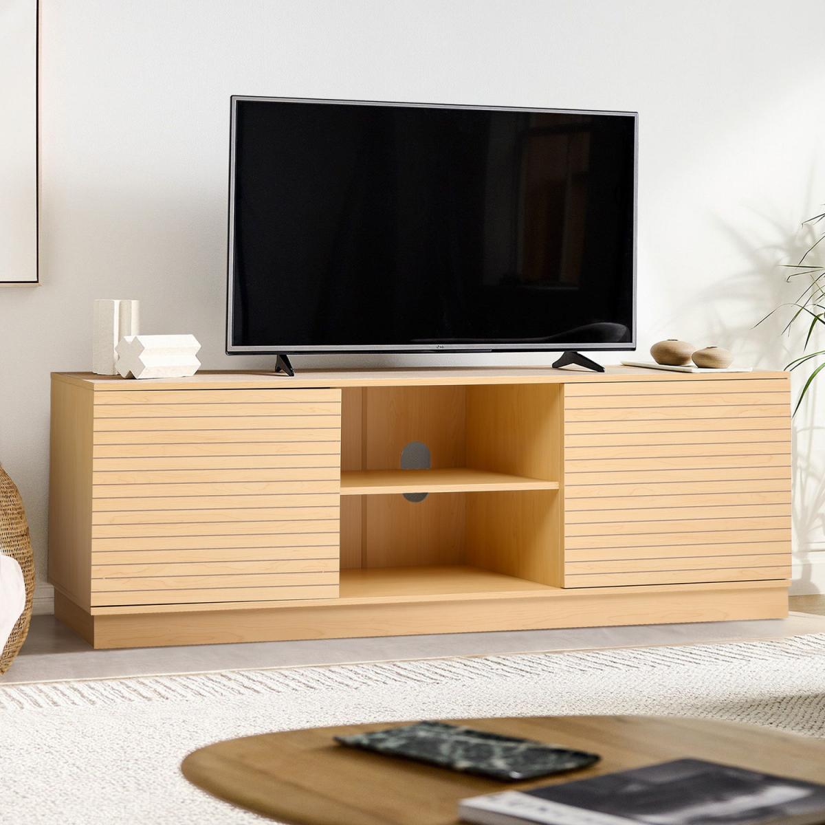 Large Slatted Wooden TV Unit 2 Doors and 2 Shelves - Natural Wood