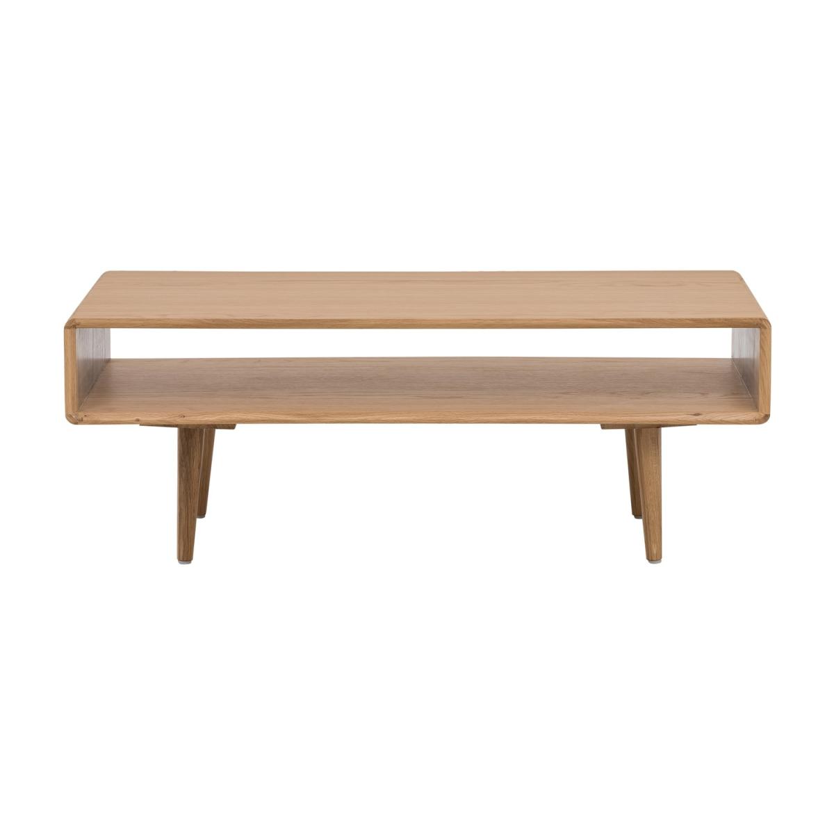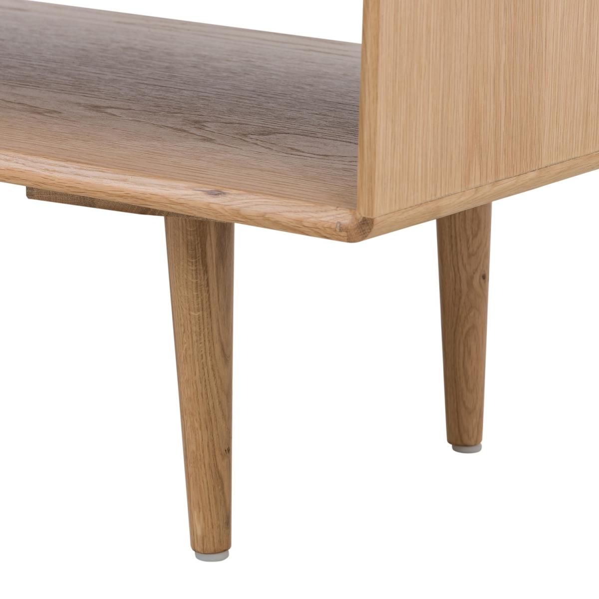 Features we love Small design with shelfstorage space Scandinavian design with neutral oak finish Curved edges create a smooth modern look Matching TV unit available All About Me The Marny coffee table is the perfect living room piece and gives you the perfect place to put your cup of coffee. Storage shelf is great holding books, dvd's or even your movie snack of choice. The rounded edges and oak finish give a stunning Scandi finish. The uncomplicated sleek lines add to the clean design of this coffee table. Matching TV unit available. Need to know Dimensions:W110 x D50 x H40 cm Colour: Brown Material: Solid oak, oak veneer and MDF Finish: Oak Assembly required:Yes