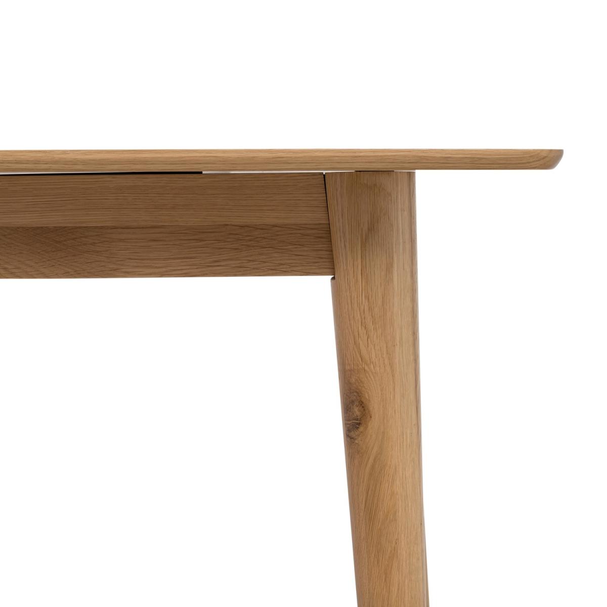 Dimensions:W160 x D80 x H75 cm The Marny dining table is the perfect place to host dinners with friends and family. Just add your favourite chairs for a comfortable and attractive dining set. The rounded edges and oak finish give a stunning Scandi finish and the uncomplicated sleek lines add to the clean design of this dining table. Features: Crafted from solid oak, oak veneer and MDF Clean lines Comfortably seats 6-8 Rounded edges offer a Scandi finish Pair with your favourite dining chairs or bench for the ultimate dining experience Assembly required